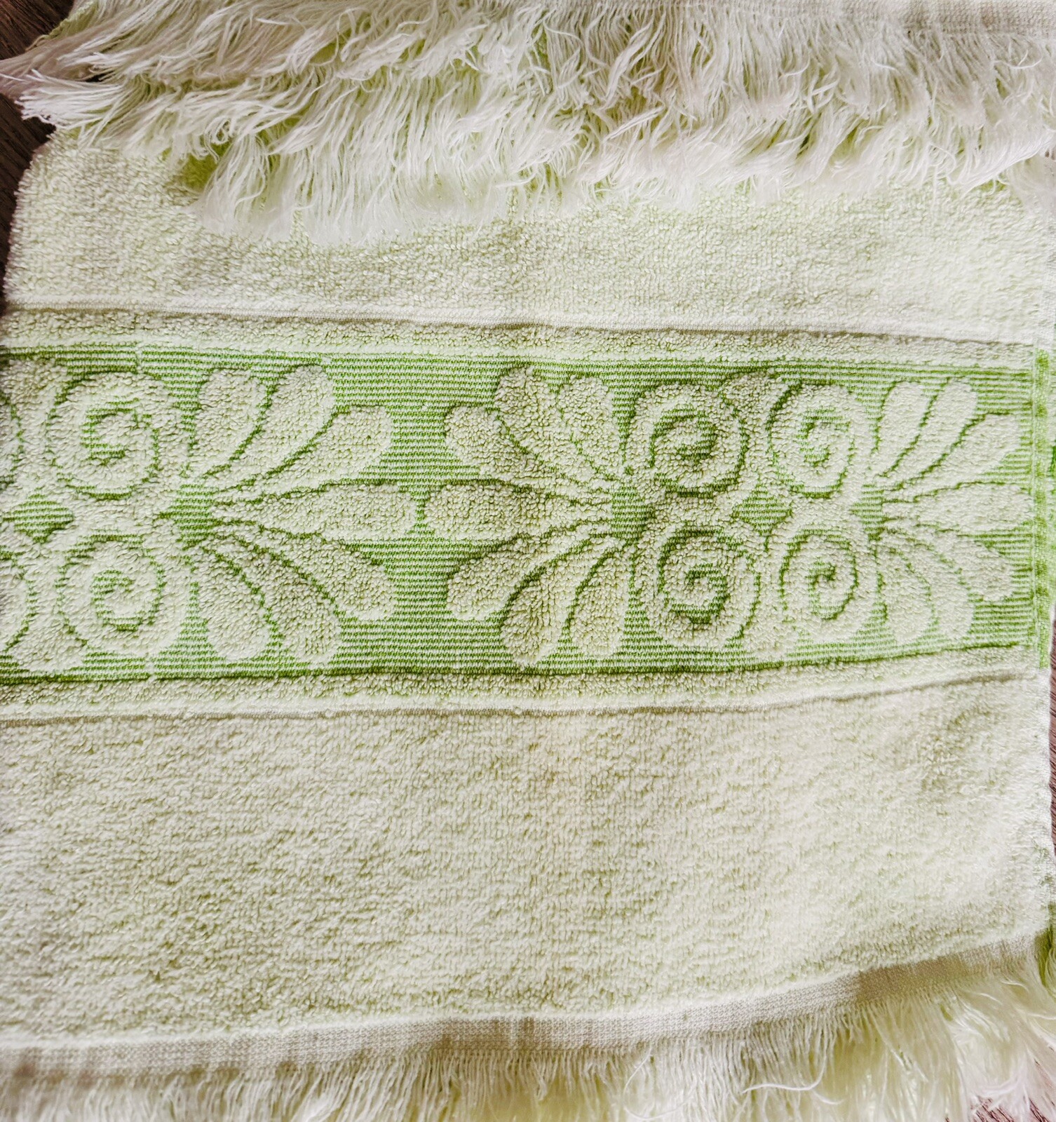 Vintage Cannon Monticello Vintage Bath Sculpted Towel; Fringe in Lime Green color. Set of 2Shells sculpted; Beautiful Vintage Condition. Each have different age tag as shown in pictures. Cannon NY USA