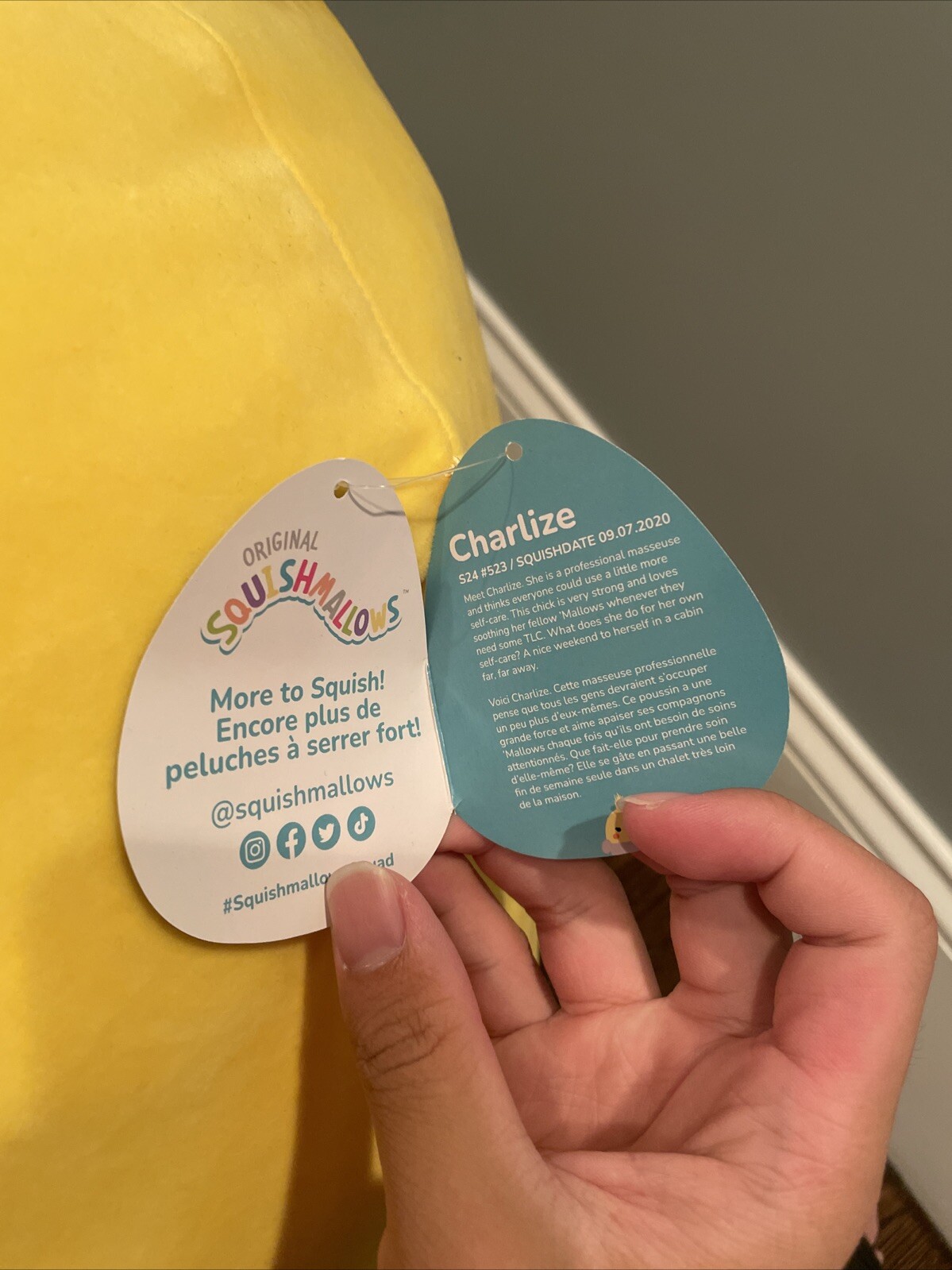 Introducing Charlize the Cockatiel, a rare and adorable addition to your Squishmallows collection. This 24-inch jumbo plush toy is perfect for any occasion and features a charming yellow color. With its soft and squishy texture, Charlize is sure to bring joy to children and adults alike. This Squishmallow is part of the beloved Squishmallows brand and is designed to resemble a cocktail, complete with delicious details and a fun character family. Whether you're looking for a gift or just want to add to your collection, Charlize the Cockatiel is a must-have. Don't miss out on the chance to own this rare and delightful Squishmallow.
