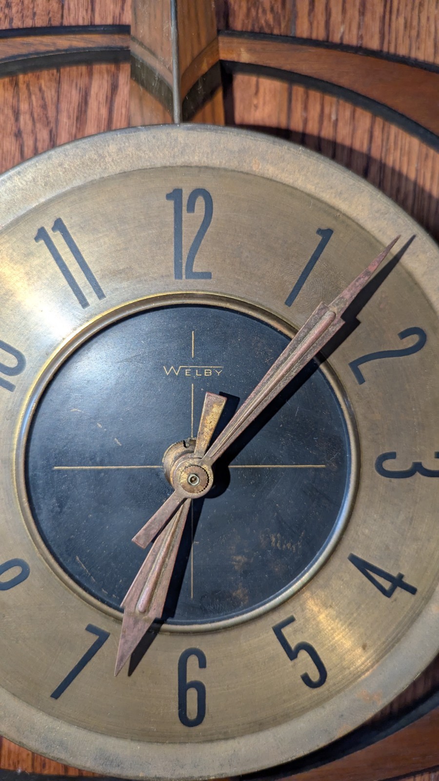 PLEASE NOTE THE CLOCK MECHANISM IS NOT WORKING. CAN BE REPLACED OR SERVICED Very neat! Retro sunburst or starburst clock. This is made by Welby. This is a very difficult clock to find. Overall nice condition with original patina. Please see photos for best description of condition and what you will receive. Thank you for looking! Dimensions are 30 in x 20.75 in by 2.5 inches