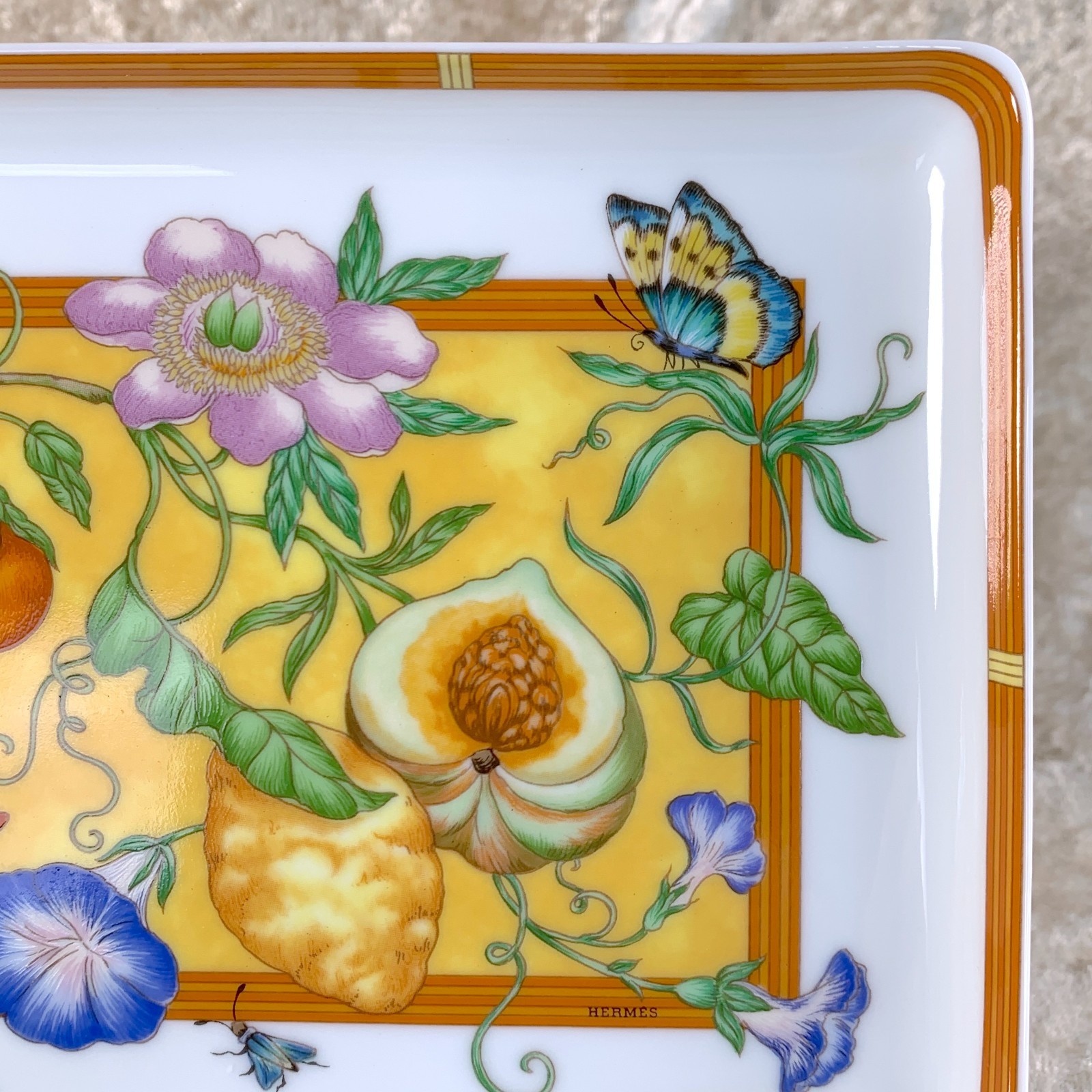 *For U.S. buyers or those shipping to the United States** Customs duties due to the recent elimination of the de minimis exemption are already included in the item price.No extra duty payment is needed. (Effective as of September 2, 2025)"ITEM DESCRIPTIONS"Vintage Hermes Paris Porcelain Rectangle Tray / Sushi Plate "La Siesta"ITEM CONDITION: Unused pristine condition. There might be slight signs of wear visible due to long term storage.* Please examine the photos for details.MATERIAL :PorcelainSIZE :W 16 x L 12 x H 2 cm / 6.3" x 4.72" x 0.79"COLOUR :White / Yellow / OrangeMADE IN :FranceATTACHMENT(S) :None*Its authenticity is 100% guaranteed. We welcome any questions/comments you may have. * We also have many other unique items in our store. Please check them out. Thank you!"ABOUT US"Thank you for visiting our store! Our products are all 100% genuine brand items guaranteed and shipped from Japan.We pack items with great care and provide our exceptional customer service.If you have any questions, please feel free to contact us anytime!"SHIPPING"The item will be shipped with FedEx or DHL Express shipping depending on your location. The delivery will be safe and fast with full tracking system.Please be confident with your purchase!* If you buy multiple items, we can reduce our shipping fee. Please contact us before your payment in that case.Please let us know if you have any other questions."PLEASE NOTE"* Payment within 3 days upon purchase is required. * We have 30 day return policy (the item has to be kept in the original condition with all the attachments,and custom duties are not refundable).* Shipping documents will be marked as Merchandise and include the full purchase price.* Import duties & taxes are NOT included in the item price or shipping cost.These charges are the buyer's responsibility (Each country has different regulations. Please check with your country's custom for details ).