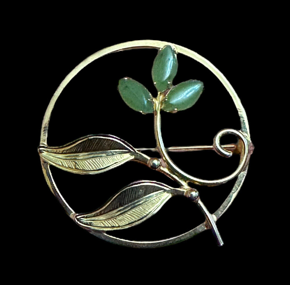 Sorrento 1/20 12K GF Gold Filagree Flower Jade 3 Stone Round Brooch Pin 3g VTG
