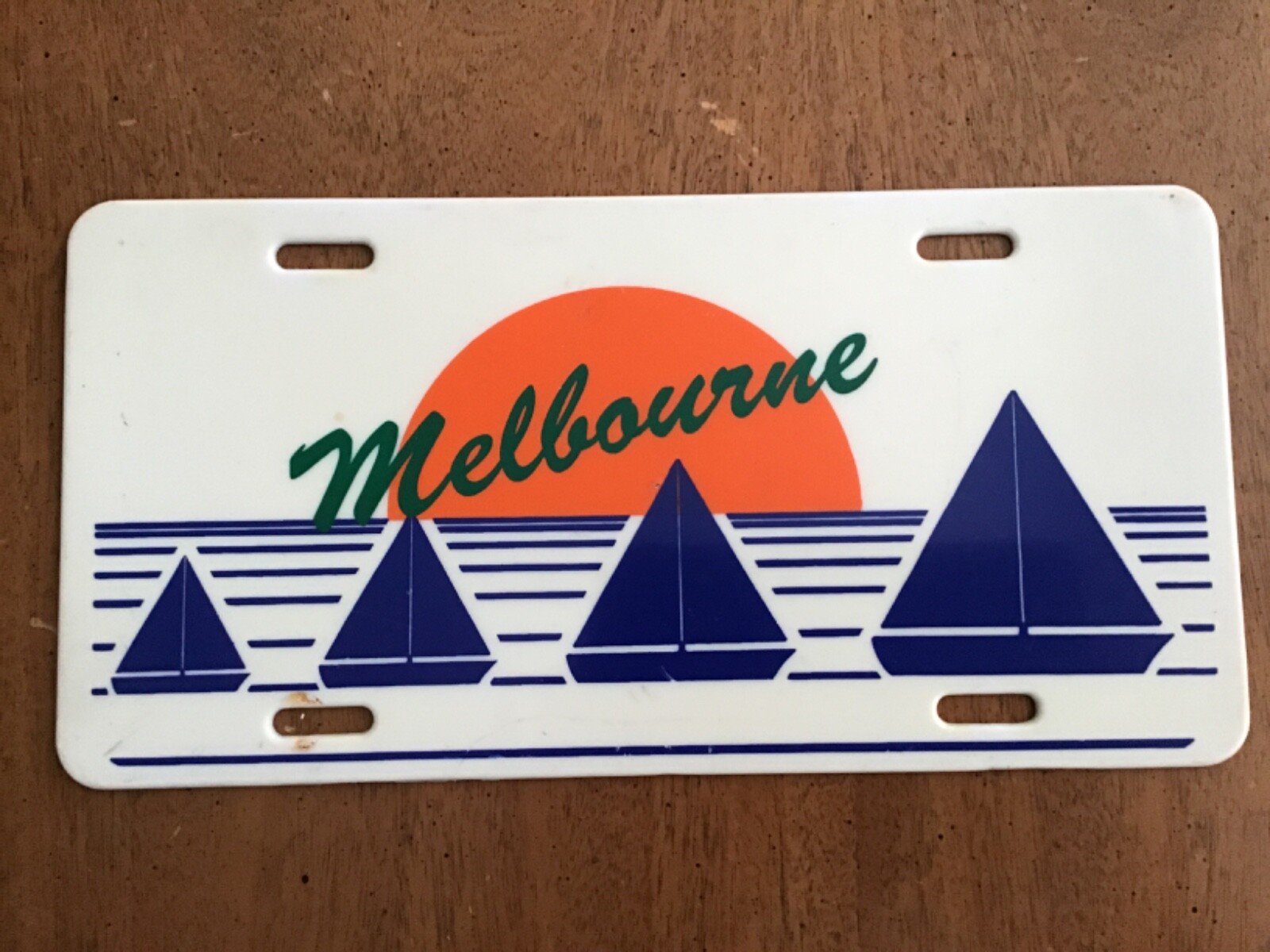 Melbourne Florida License Plate Booster Vintage Thick plastic novelty sailboat