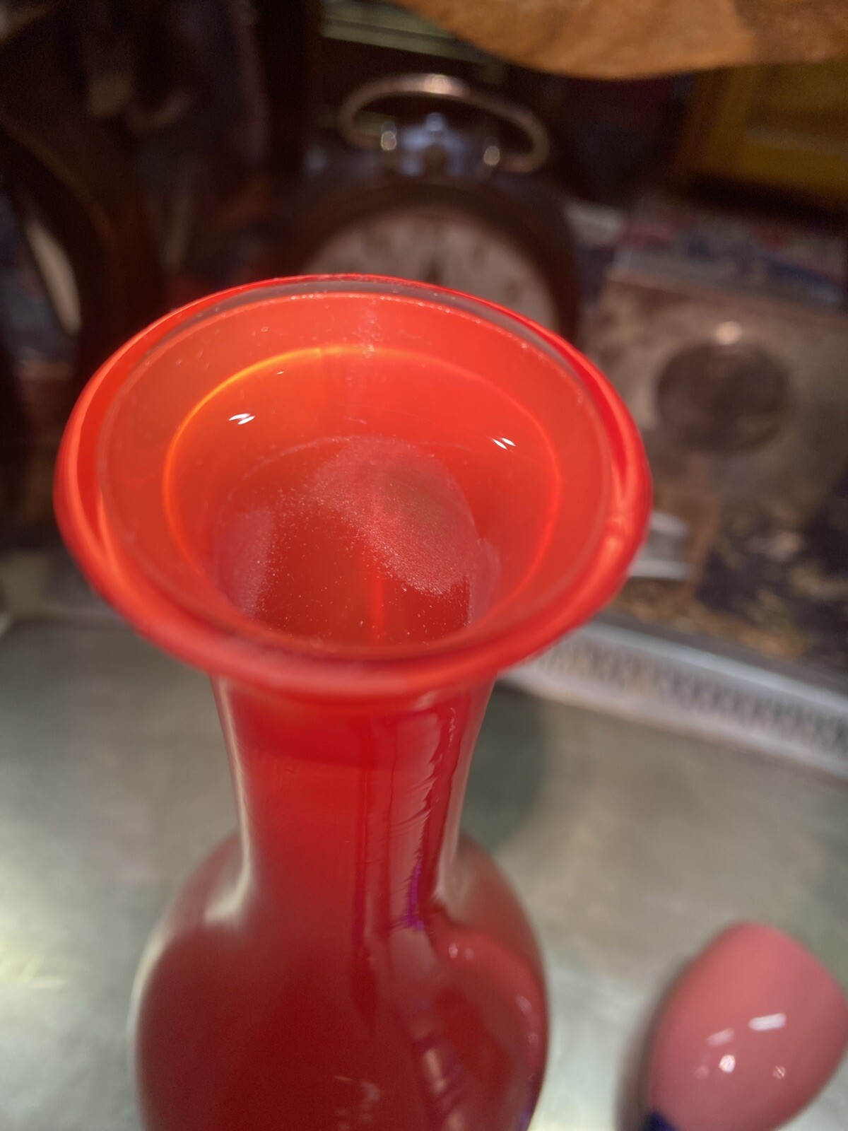 This Bimini Glass Italian Pitcher Liquor Decanter Bottle Flask&Cups set is a stunning addition to any collection. The beautiful combination of cobalt, ruby, red and coral colors make it a perfect choice for those who appreciate unique and eye-catching drinkware. Crafted from high-quality glass, this set is sure to impress your guests and add a touch of sophistication to your bar cabinet. The set includes a liquor flask and 2 glasses, making it perfect for sharing drinks with friends and family. Ideal for collectors and those who appreciate fine craftsmanship, this set is a must-have for anyone who wants to elevate their drinking experience.Measures 11 tall with octagonal cobalt stopper by 3in diameter of decanter. Cups 4in high each. Pristine condition