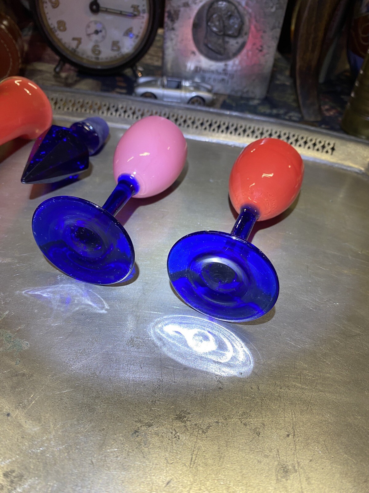 Bimini Glass Italian Pitcher Liquor Decanter Bottle Flask&Cup Cordial Cobalt&red