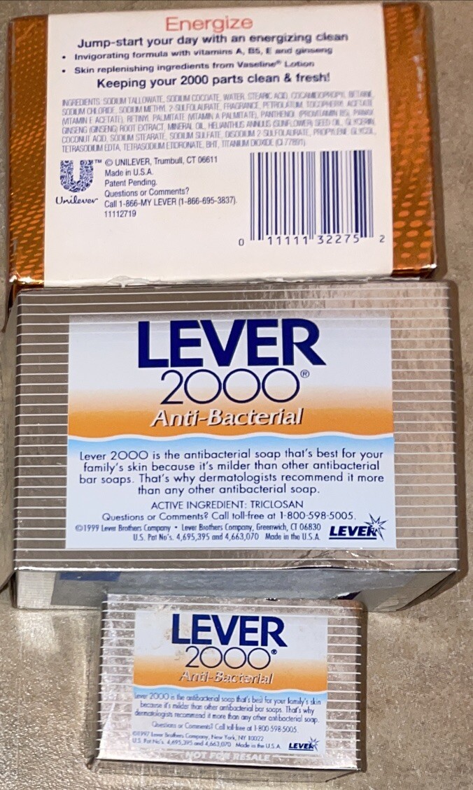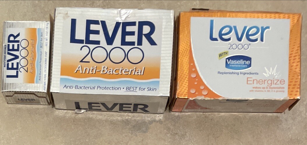 Lever 2000 With Vaseline ENERGIZE 4.5oz. & Antibacterial Bar Soap 4.5oz & 1oz. = 3 bars Vintage New.