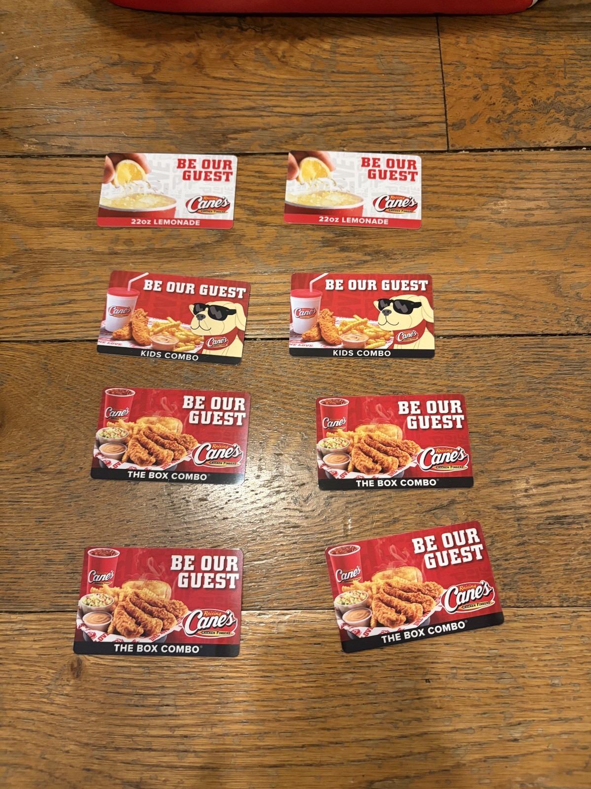 The Raising Cane's Gift Basket is a themed gift basket focused on food and drink. Perfect for various occasions, this basket is filled with a selection of delicious items from the popular Raising Cane's restaurant. It makes for a great gift for friends, family, or co-workers who enjoy the restaurant's cuisine. Additionally, this gift basket is sure to impress with its thoughtful and appetizing contents. Comes with GIFT CARDS THAT HAVE NEVER BEEN USED. FULL PACKAGE WORTH: $197.49Gift Card List 4 Box Combo2 Kids Combo2 Lemonade Drink