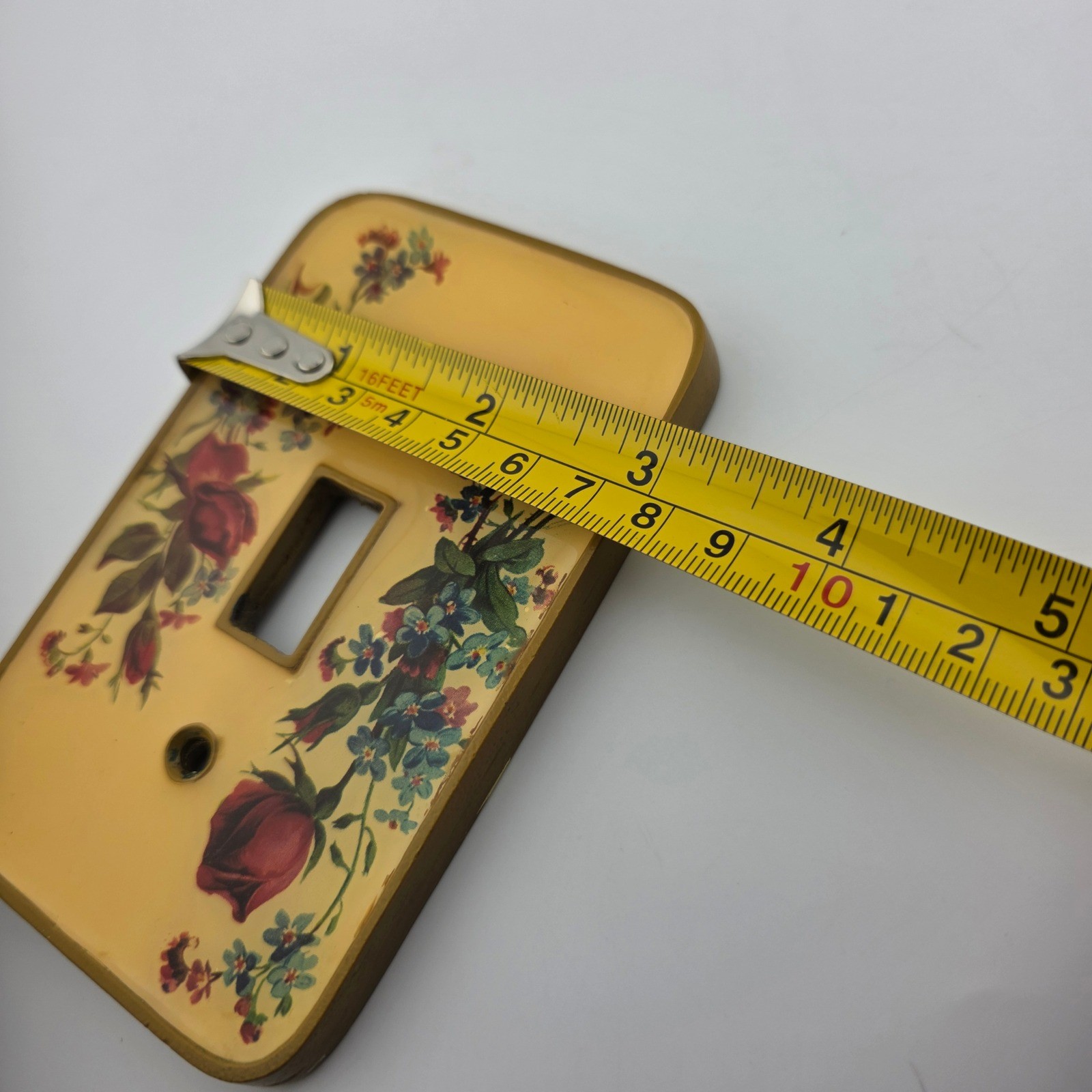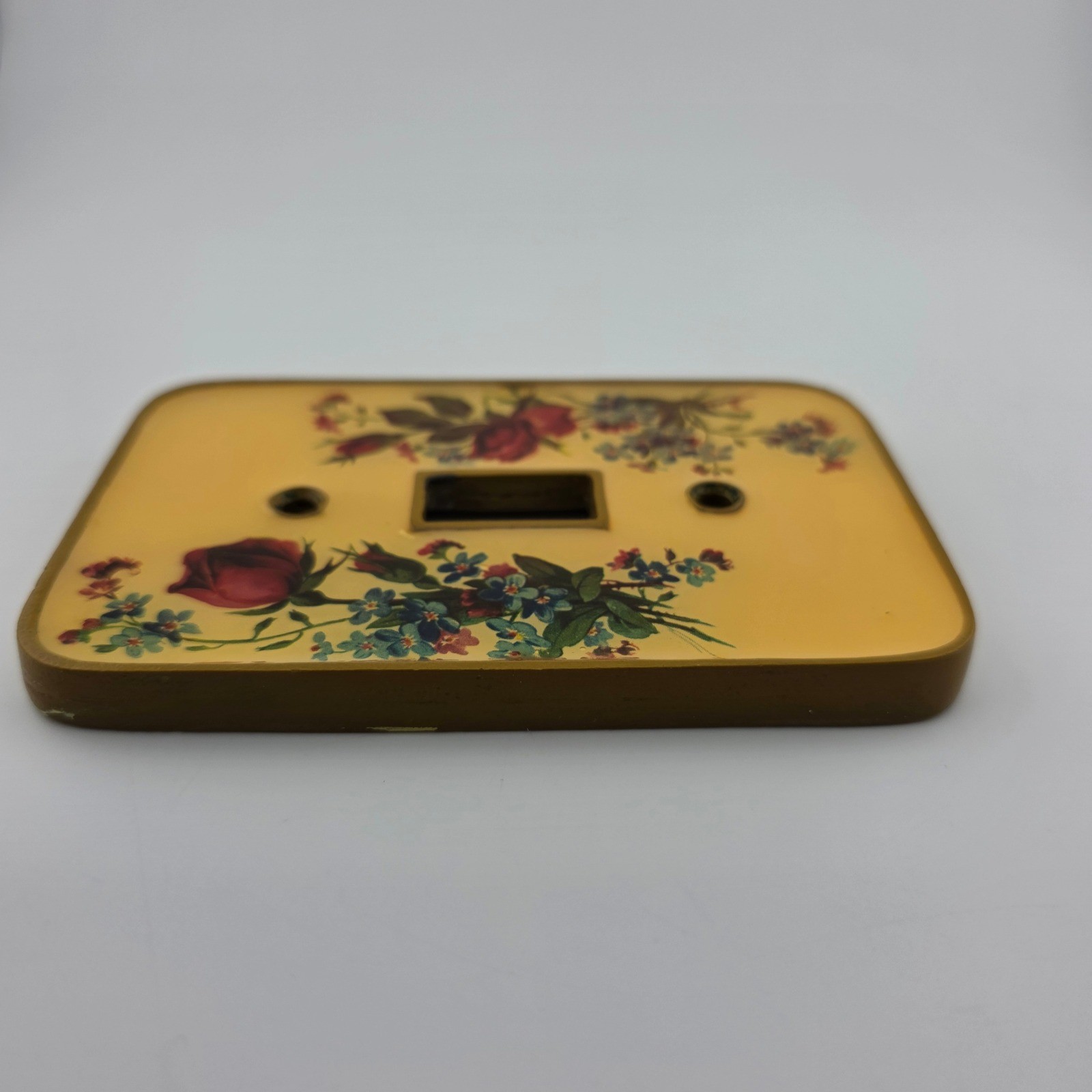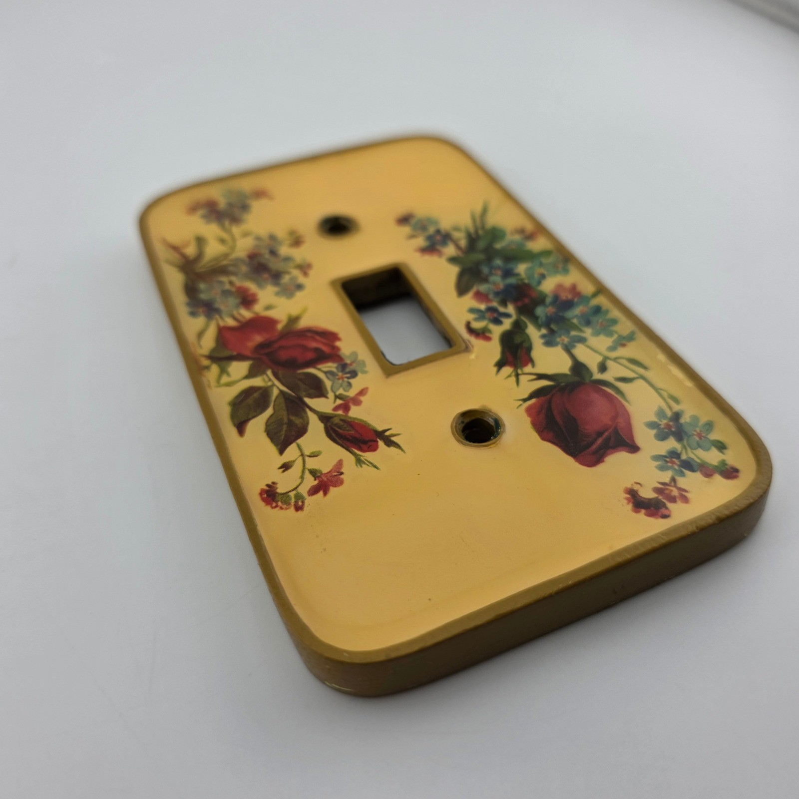 Good condition; Very heavy; Switch plate cover may show signs of paint along side/back edges• Vintage resin and brass switch plate cover• Victorian rose and wild flower design• Heavy decorative floral home accent• Paint visible along side/back edges as notedLoot & Co. | Family-run shopAdd multiple items to your cart and message us~ bundles often save you some moneyYour purchase supports our family. Thank you!