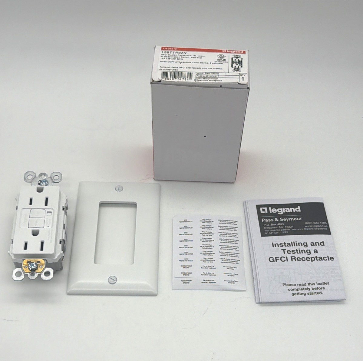 Description: Upgrade your safety with the Radiant Legrand 1597TRAW GFCI outlet. This versatile tamper-resistant receptacle features an audible alarm that alerts you if ground faults occur, making it perfect for hard-to-reach areas like basements, garages, or outdoor circuits. With its sleek white finish, it blends seamlessly into any residential setting. Key Features: Audible alarm for added safety Tamper-resistant design Ideal for basements, garages, and outdoor use 15A, 125V standard household rating Sleek white finish to match any decor This GFCI is ideal for protecting a variety of appliances, such as dehumidifiers, sump pumps, refrigerators in garages, electric water heaters, and even EV chargers. With its sleek white finish, it blends seamlessly into any residential setting. Condition: