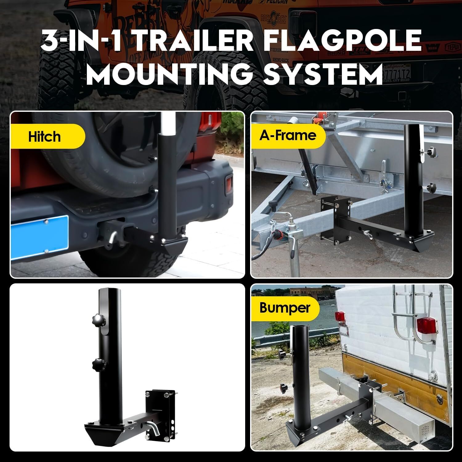 Full Stainless Steel Heavy Duty RV Flag Pole Mount,Frame/Hitch/Bumper 3 in 1