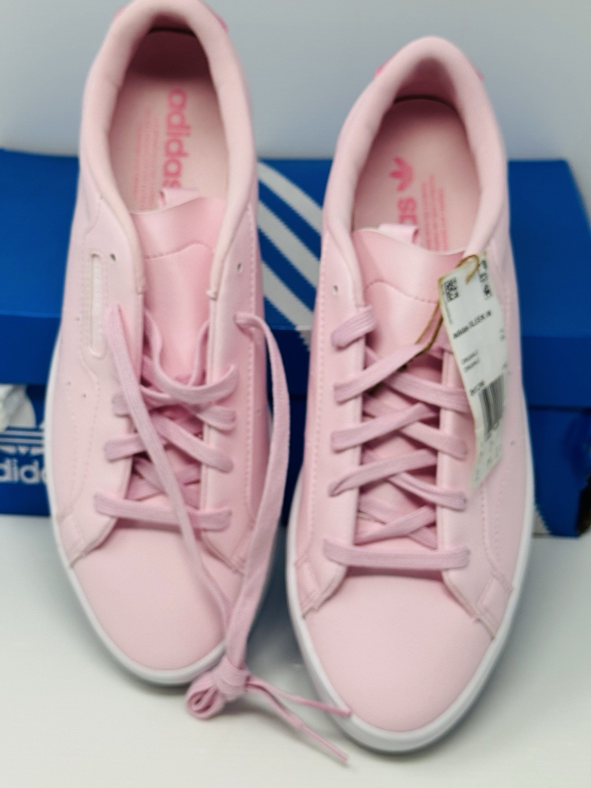 Adidas Originals Sleek Women’s Sneakers Athletic Tennis Pink Trainers Size 9Box has some storage damage. Shoes are brand new in box with tags.