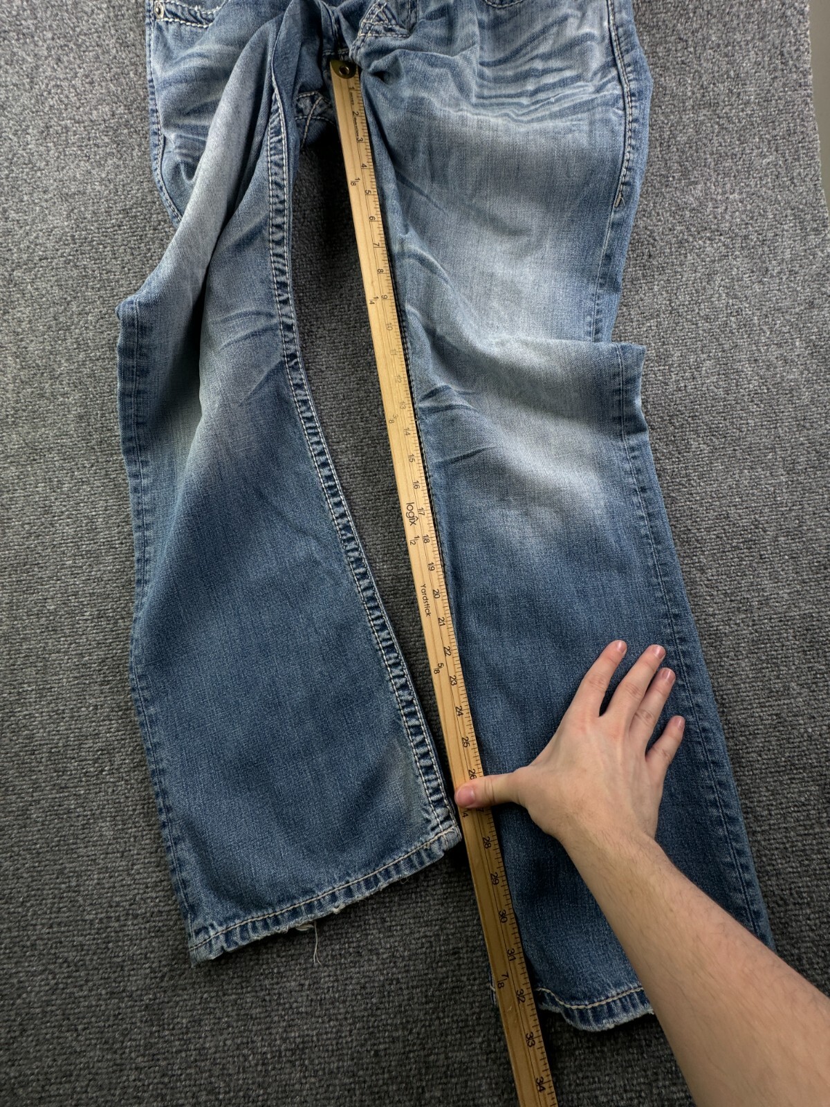 Good condition but the leg ends are frayed - not sure of they came like that. See photos. Message for any questions, we reply quickly! If you buy multiple items we will combine the shipping, so expect a partial refundto reflect the shipping cost savings. This garment comes from a non-smoking house.What does 'good condition' mean? When we say 'good condition,' the garment will have no notable holes, stains, or other flaws, unless otherwise specified. Moderate/severe flaws are always disclosed, like holes and pea-sized or larger stains, and we do our best to disclose even minor flaws like very faint stains, dark spots, and even stains as small as a grain of rice or smaller. Flaws thatare not visible while wearing and flaws that don't affect functionality (like apartially torn tag or a stain on the inside of a shirt that isn't noticeablefrom the outside), may not be disclosed.SKU: 176LD: 0924In compliance with this platform's Used Clothing Policy, please note that allused garments have been properly cleaned via having been either machine washed,hand washed, dry cleaned, ironed, steamed, or a combination of thereof.