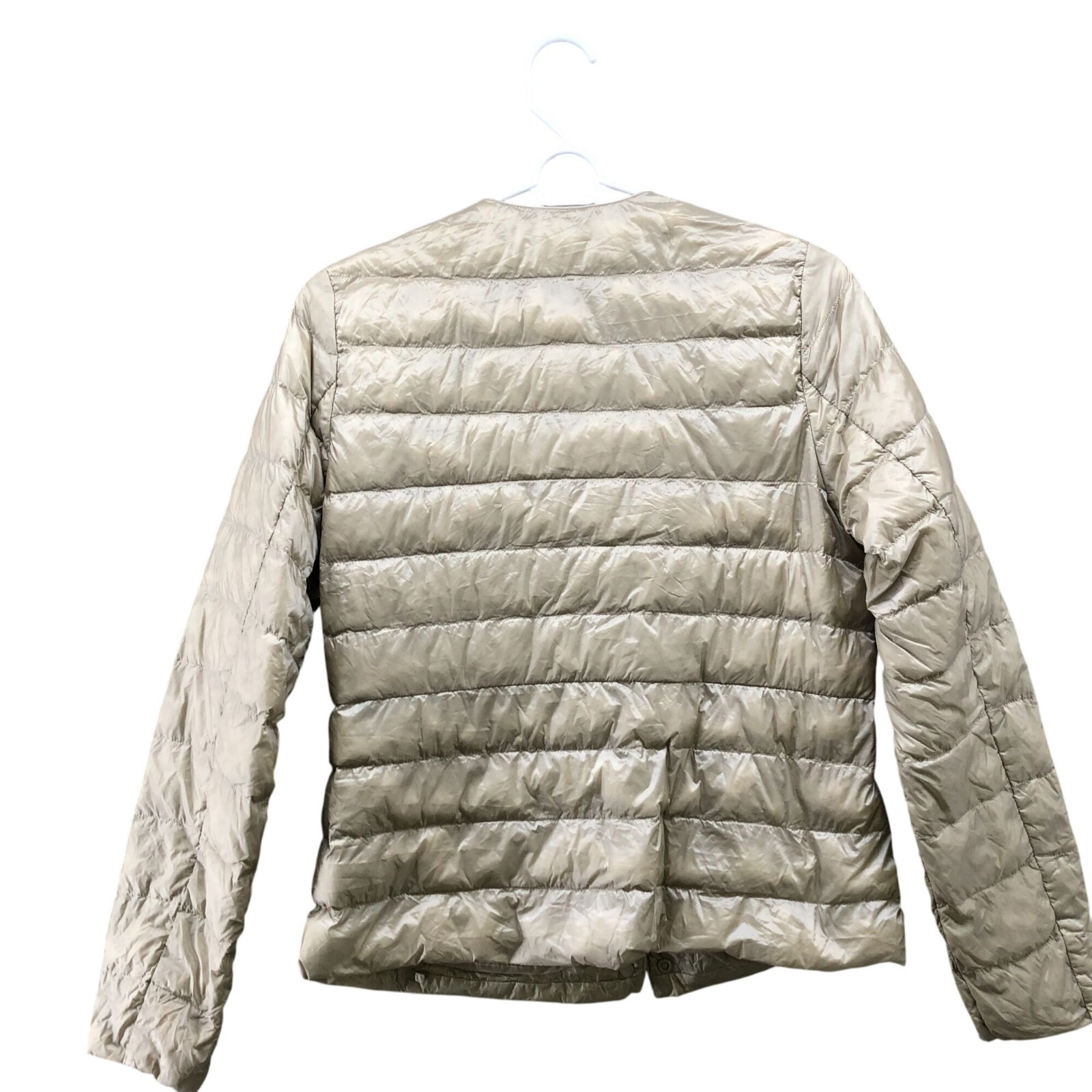 Uniqlo Down Jacket Womens S Gold Beige Snap Button Lightweight Quilted