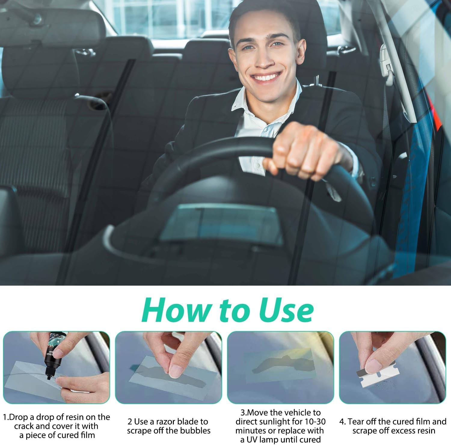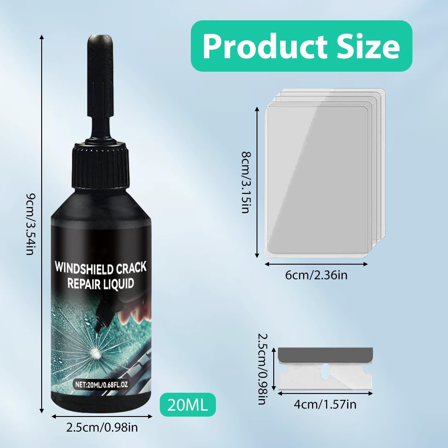 2PCS Windshield Crack Repair Kit, New Glass Cracks Gone Repair Kit, Windshield Crack Repair Car Window Windshield Repair Kit, Glass Repair Fluid for Fixing Chips and Star Shaped CrackOur auto glass nano repair fluid kit ensures swift curing and exceptional repair results. There's no need for repetitive maintenance. The glass repair kit can quickly and effectively repair small damages in 20-30 minutes. Save yourself the cost and time of replacing a piece of glass. Small in size, light in weight, and easy to carry. It can be used at any time when you need it. A good helper for repairing glass. Product dimensions: 4.02 x 2.83 x 2.13 inches.