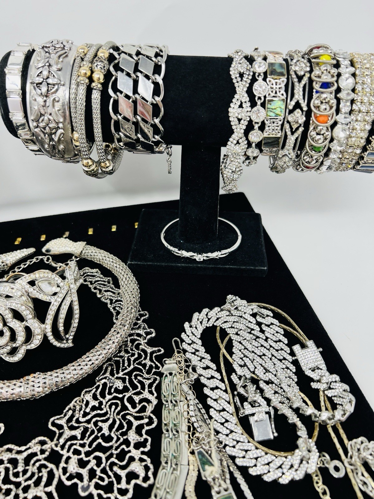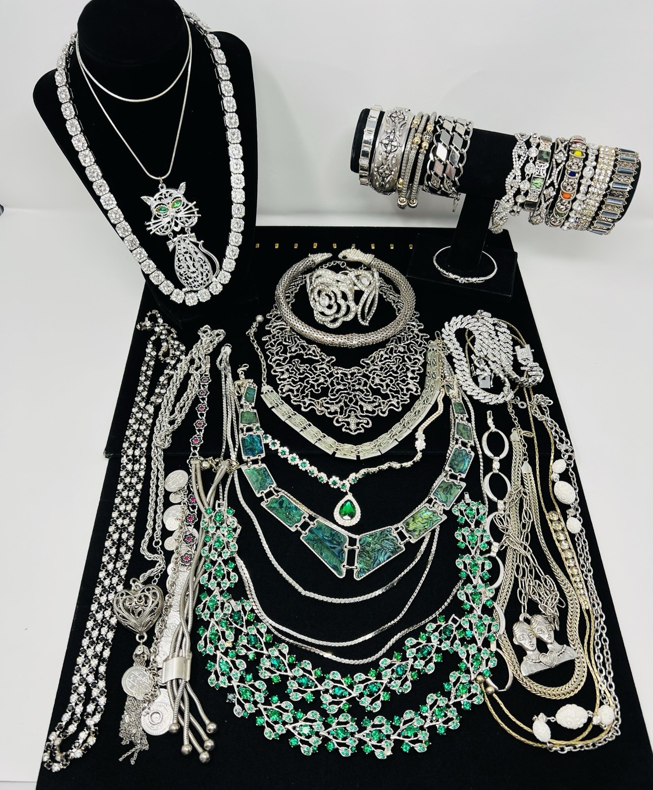 Vintage Classic Silver Tone Signed And Unsigned Jewelry Lot Of 30