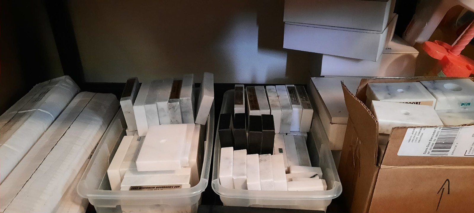 Be your own boss!! This is a huge lot of everything you need to make Sports Trophies. I have many more pictures of items, can only post 10. This is a business inventory that includes New inventory-Marble & Wood Bases, pillars, tools for creating the Trophies. Computer, name plates, engraver All different pieces. Your chance to have your own side business. Can be seen by appointment. Are you interested in expanding your trophy business or starting a new venture? A substantial collection of trophy items is currently available for purchase in Tomah, WI. The inventory includes: -Over 2,600 new trophy toppers and numbers, primarily plastic and gold-colored, with approximately 90% in their original packaging. These items are organized by sport and item, stored in 39 labeled boxes. Based on research, these items originally sold for $4-$8 per piece (estimated total value: $10,000-$20,000). -Several boxes of tubes -Wood and stone trophy stand components -Several boxes of bolts -A circular saw for cutting tubes -A computer -A monitor - Engraver Pictures of all can be sent through private message as we can only put so many on this post. This is a huge lot!!! Sorted by category, so easy to add to your collection or organize your new collection. The proceeds from this sale will be donated to local elementary school students for school supplies, Christmas gifts, and food boxes for those in need. Please email with any inquiries, requests for additional photos or come in to look at the items. Serious inquiries only, please. Delivery is available within a 50-mile radius of Tomah for an additional fee, with full payment required prior to delivery. PayPal is accepted.