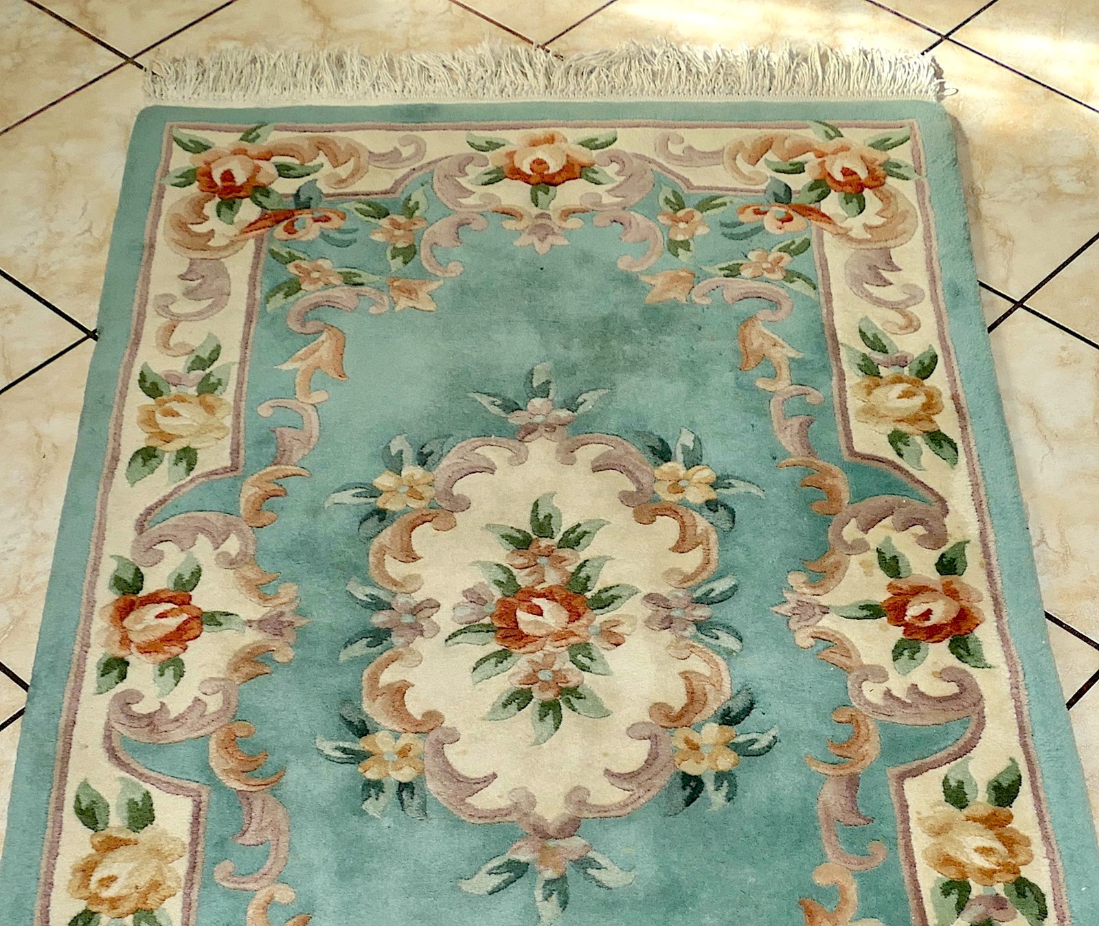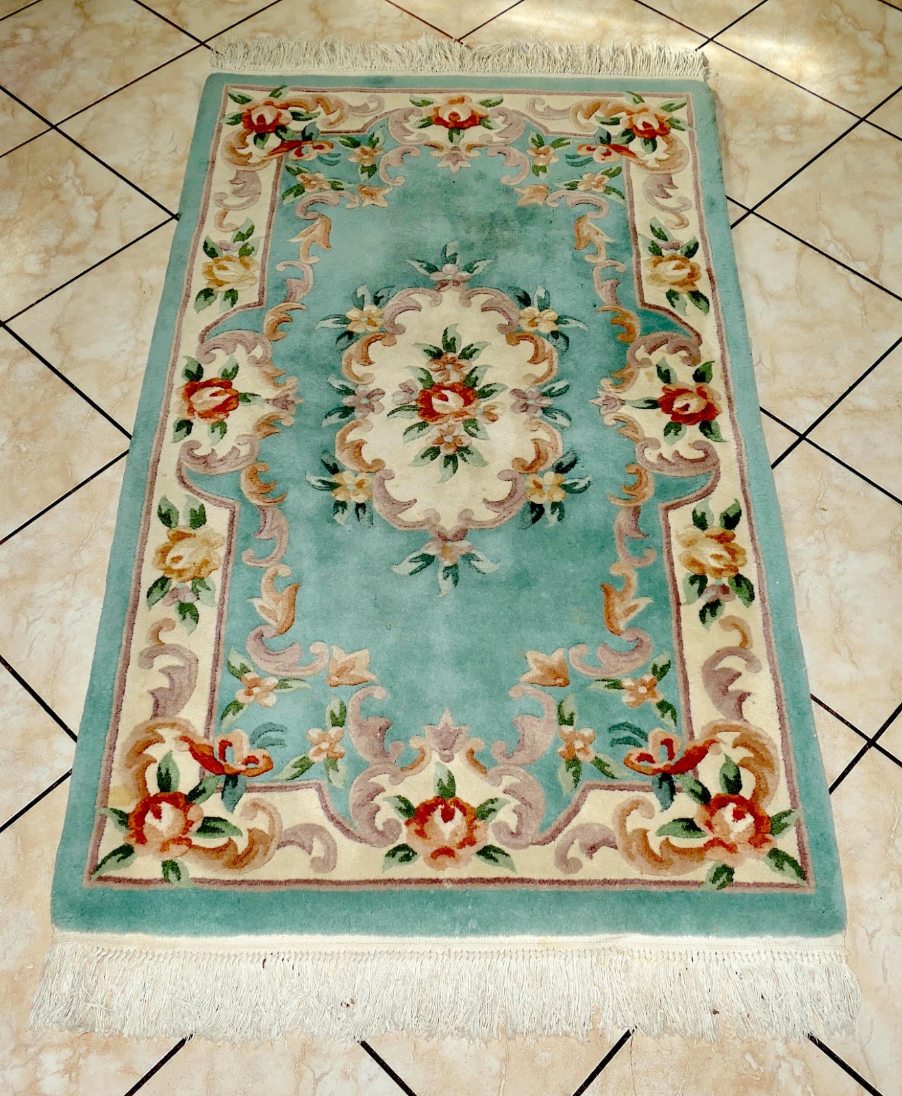 size imperfections to the pile (please, see last 6 detailed photos).This rug wasn't professionally cleaned before listing, it was only well vacuumed.Any cleaning is only buyer's responsibility.NO RETURN! FINAL SALE.Please, visit our store for more interesting and rare items: you never know what you will find!Thank you. ************************************************************************Our merchandise is collectible, antique or vintage, it is not new and not flawless and has lived a long and eventful life. We do not launder, dry-clean, press or repair... We expect the buyer to be prepared to clean or launder items even if item has never been worn or used.International buyers pay ALL the additional costs such as duties, taxes, and customs clearance fees including VAT - VALUE ADDED TAX ON GOODS - No Exceptions! Import duties, VAT, charges and taxes are not including in item price or shipping charge and are only buyer’s responsibility.These charges may vary widely but are most commonly based on the price and type of item, package weight and dimensions and the taxes, duties, and fees of the destination country.We do not mark merchandise values below buyer's payment - USA and International Government Regulations PROHIBIT such behavior Thank you! Froo www.froo.com | Froo Cross Sell, Free Cross Sell, Cross promote, eBay Marketing, eBay listing Apps, eBay Apps, eBay Application