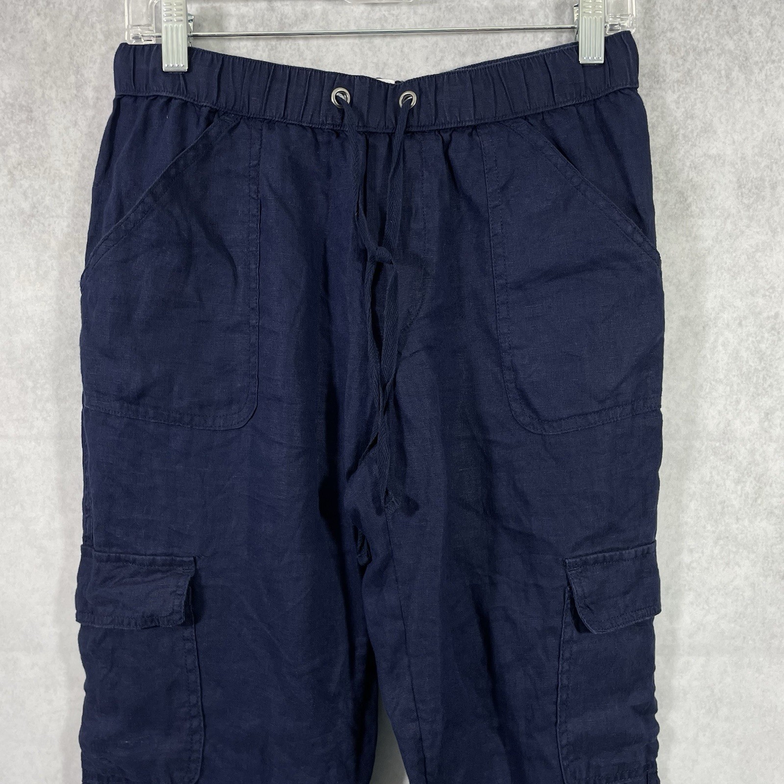 Nicole Miller Linen Jogger Pants Womens Size S Blue Cargo Solid Elastic Waist.