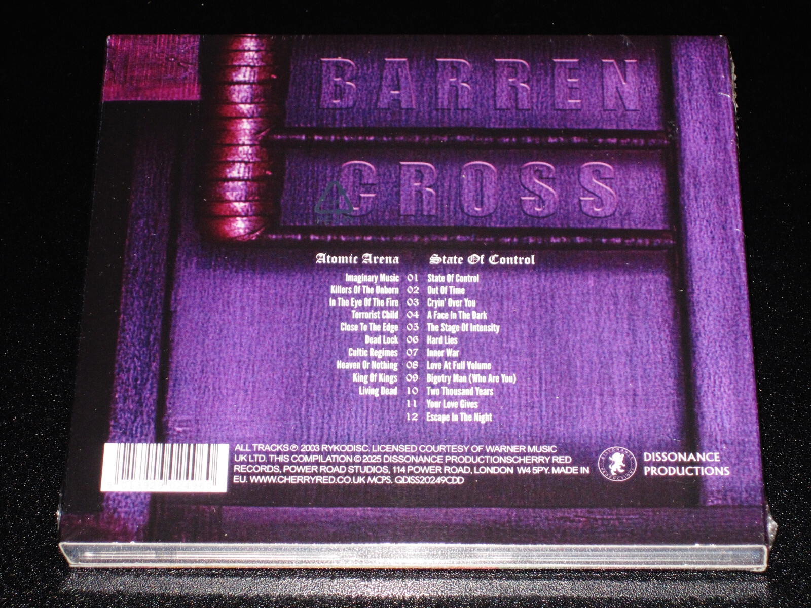 Welcome to Mad Rush Media! Title: Barren Cross: Atomic Arena + State Of Control (2 CD Set) Label: Dissonance Productions EU QDISS20249CDD UPC: 5013929024960 CD Condition: