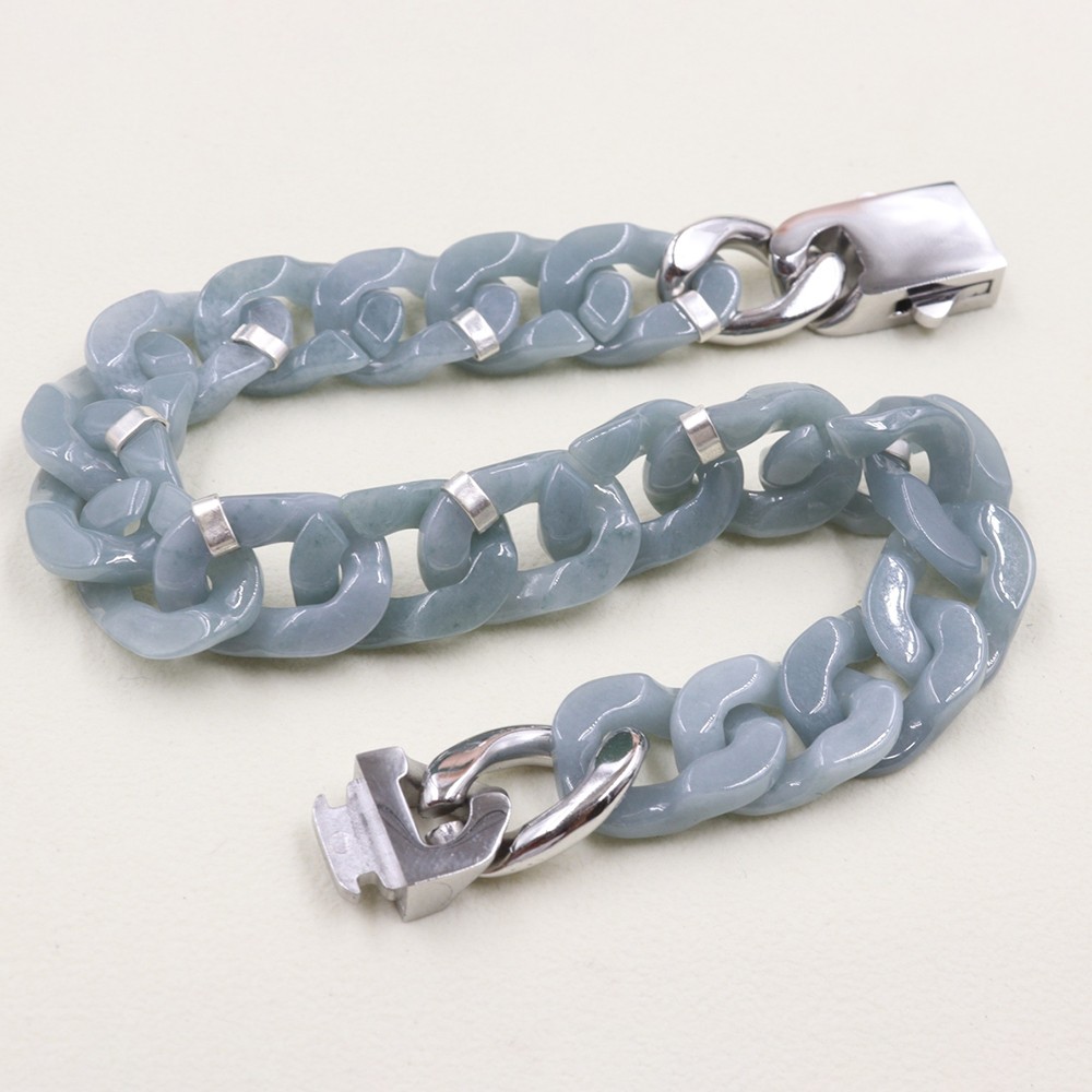 Real Grade A Natural Blue Jade Jadeite Cuban Curb Link Bracelet 5.9-8.3inch