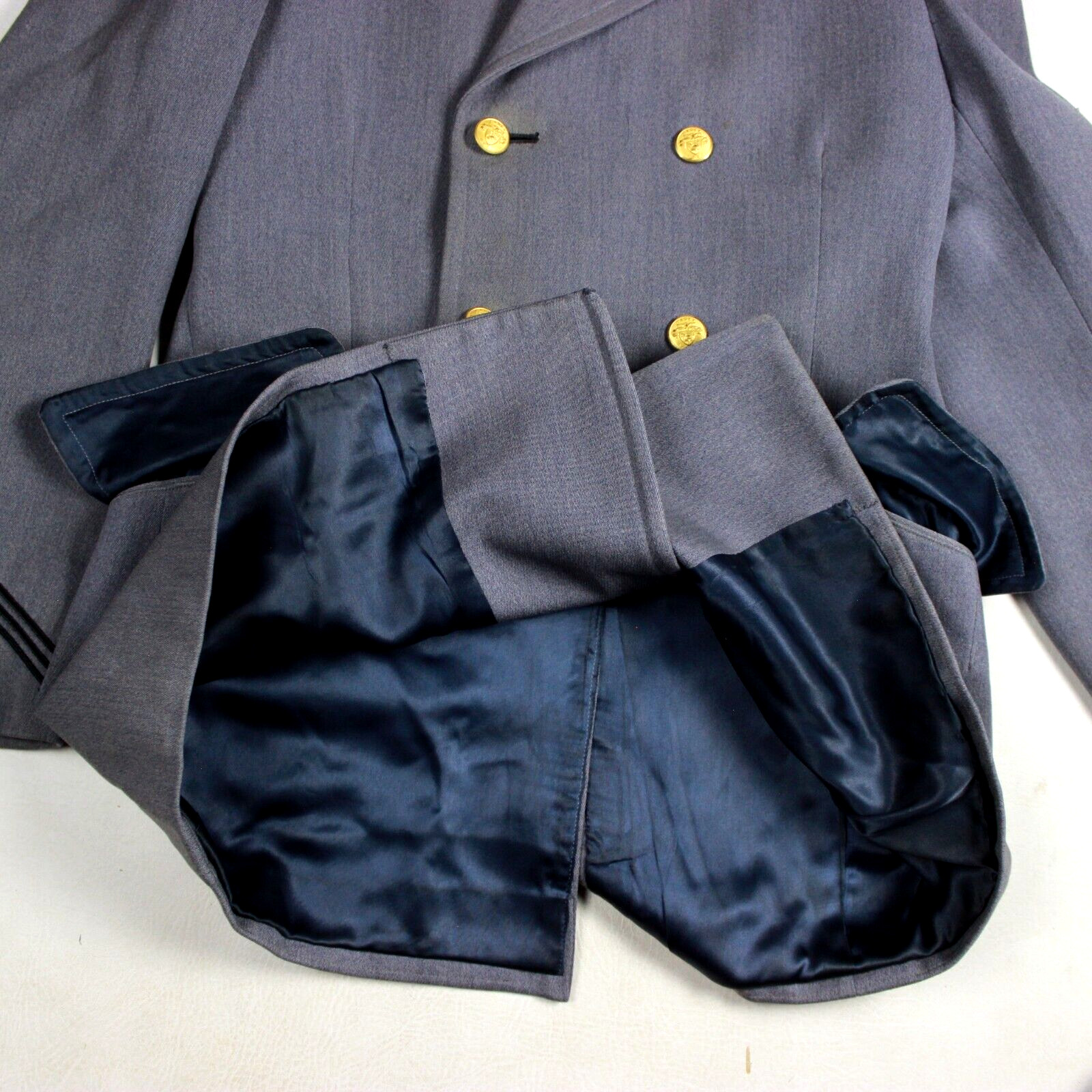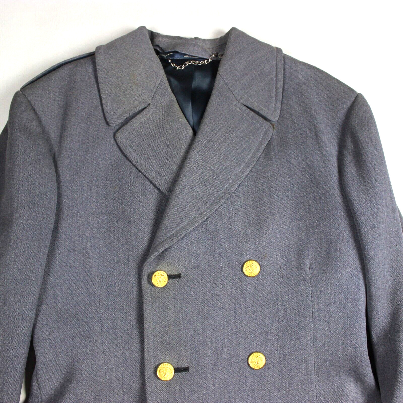 1970s US Military Academy West Point short overcoat.Dark grey wool construction with rayon lining.Good condition. Light wear. Needs a dry cleaning due to staining and dust from long time storage.A couple small moth holes on the right arm.Size 38 - Dimensions: Across shoulders: 20inArmpit to armpit: 20inNeck to hem: 32inShoulder to cuff: 27inArmpit to cuff: 19inPlease check & enlarge all pictures as they are an important part of the item description.Don't forget to check my other items for sale. I'm always happy to combine shipping!Feel free to contact me should you have any question regarding this item. I’ll be happy to answer you. I speak English & French.******* PAYMENT *******Payment is due via PAYPAL within 5 days after the end of the auction. Please contact me should you need more time.******* SHIPPING *******I usually ship within 0 to 1 day after receiving the payment. I'm always happy to combine shipping on multiple purchases. I will send an invoice with combined shipping or will provide a refund for the overpaid shipping.International buyers are welcome!Domestic & international: Shipping rates are calculated with the box weight & dimensions and are also based on your location. I usually offer several shipping options to give you the best possible service/price. Please contact me before paying if you need to modify the shipping method or add insurance.Please note that import duties and any other charges are not included in the sale price. I will not mark it as a gift or lower the declared amount on the custom forms.Thanks for lOOking.