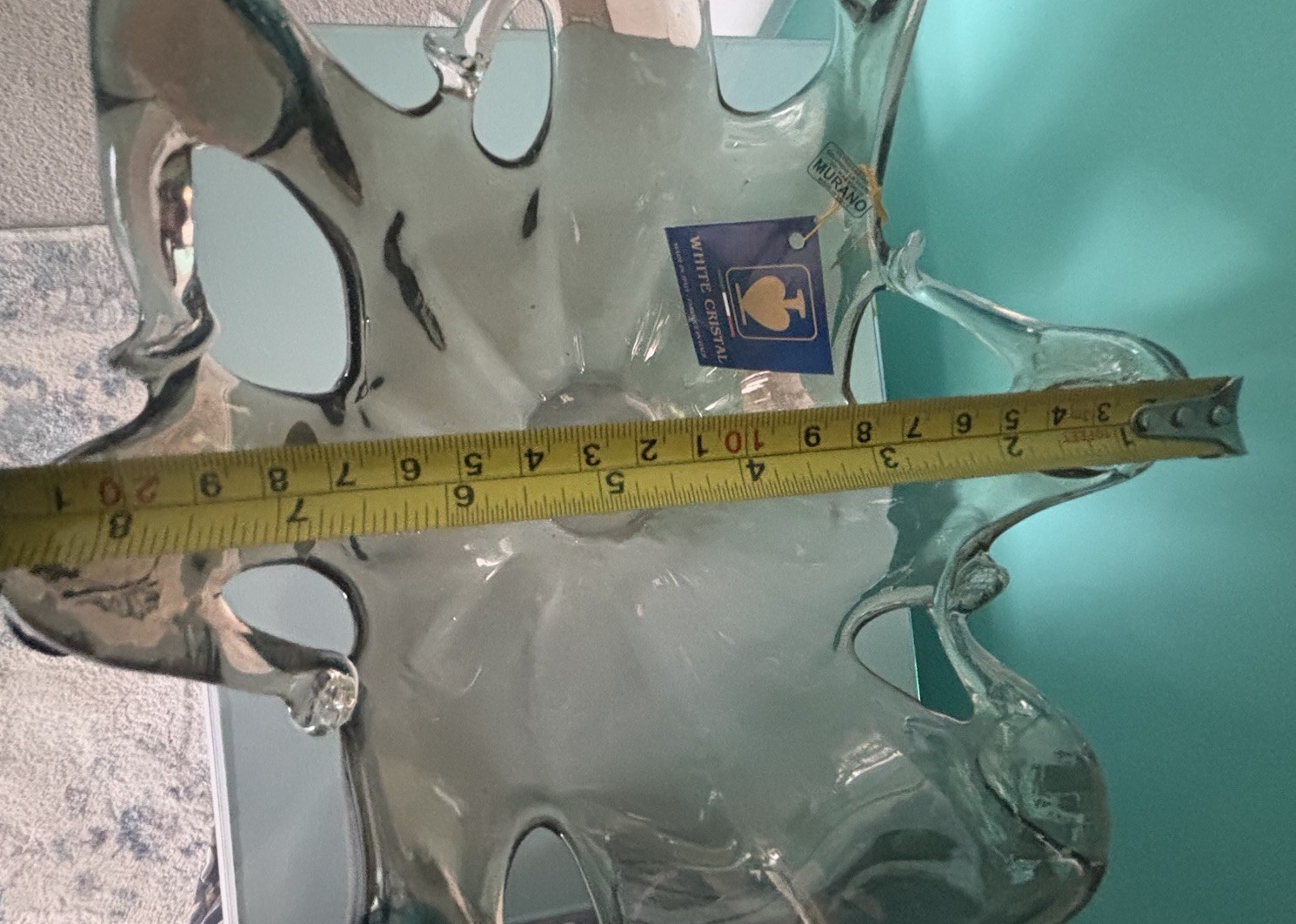 White Cristal Murano Style Hand Blown Art Glass Bowl, Large