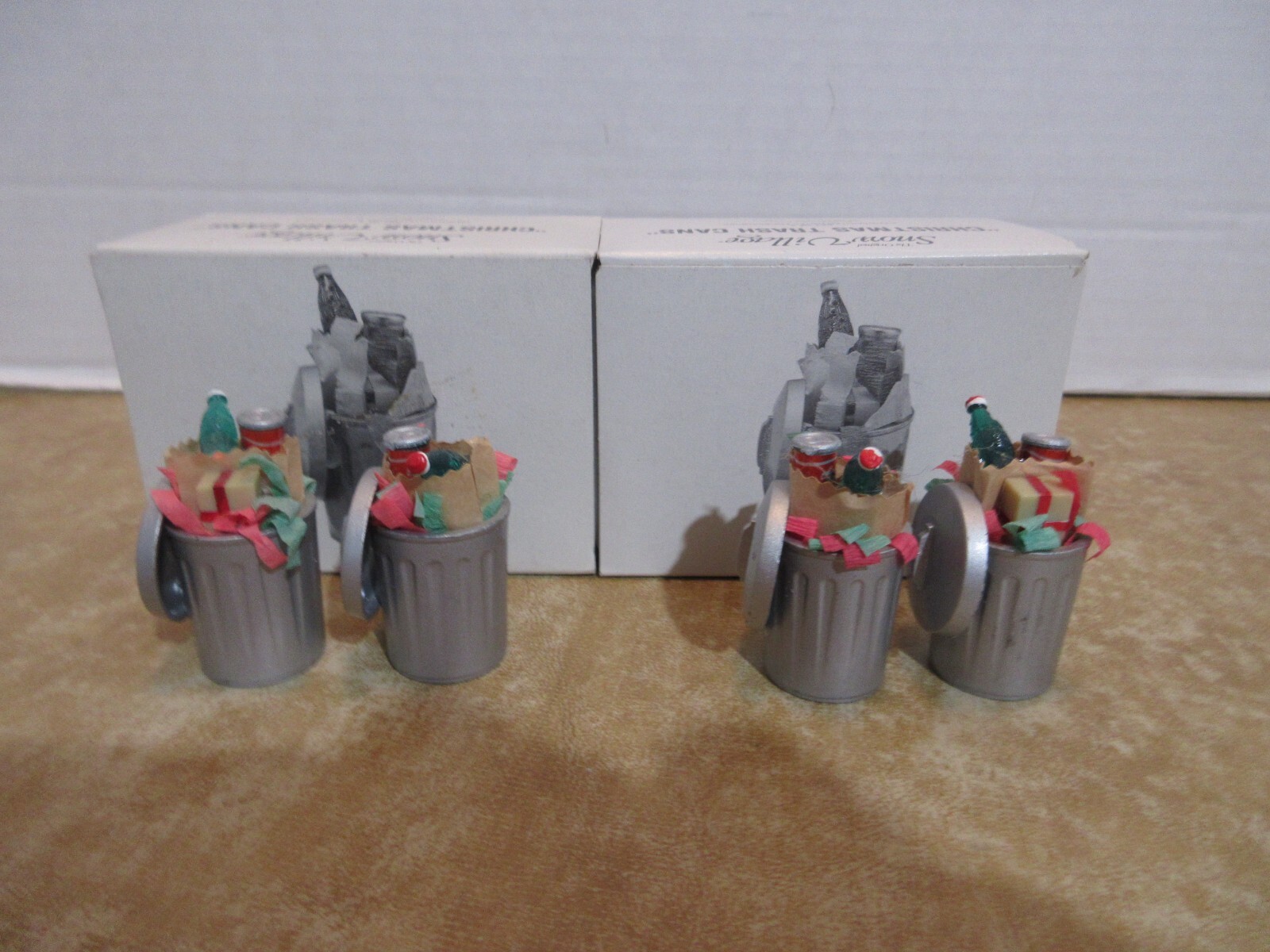 This auction is for 2- 1990 Dept. 56 Snow Village 352094 "Christmas Trash Cans ." There are two sets of trash cans for a total of 4 pieces . They measure approx. 2 inches high x 3/4 inches long x 3/4 inches wide. They had been displayed , and were well cared for. The detail is great. They would be a great addition to your Snow Village or really any village display. The paper sleeves on their boxes have some wear from age and storage. Please check out the pictures! They were purchased from a Dept. 56 collector and has been stored in a smoke free home. Shipping cost on this item varies by your zip code location. Feel free to email me with any questions. Check out my other auctions for more great Dept. 56 and other items! Buy multiple items and combine shipping.Pa. residents are charged Pa. 6% sales tax. Many states are now making E-bay collect sales tax on your purchases. If when you receive your item you have any questions or concerns PLEASE contact me prior to leaving neutral or negative feedback. I will do all I can to resolve any issue. I try to give a very accurate description but sometime I miss or forget to mention something but never intentionally. Thank-you! bluetotwood
