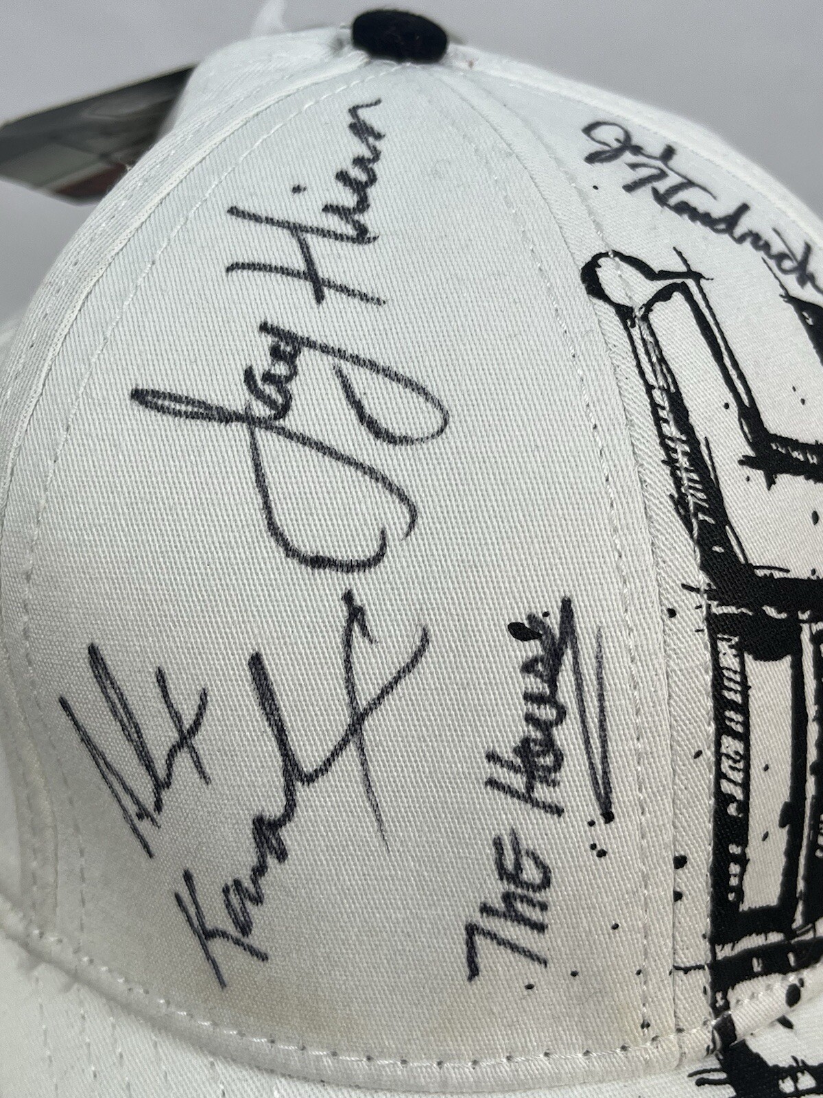 This UFC autographed hat includes signatures from Rashad Evans, Frank Mir, Jay Hieron, Alex Karalexis, and one additional signer. The hat is new with tags and has no issues, and the autographs are described as being in great condition. A JSA Certificate of Authenticity (COA) is included for verification. This item ships with free shipping. Check the listing for details on the exact autograph placement, ink color, and any other included documentation or packaging.
