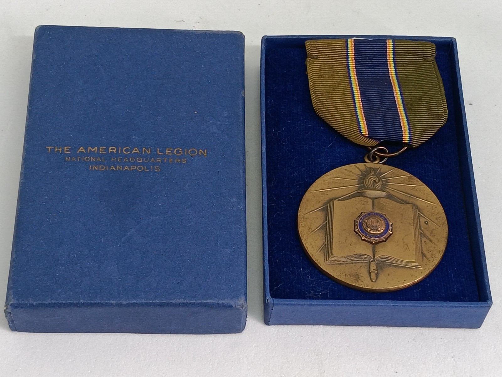 Condition: NEW OLD STOCK - BLANK BACK, NO ENGRAVING Material: Bronze Markings: "BALFOUR" on rear,Size: 1.50" diameterAge: 1940s - 1950sOverall condition: Excellent This medal ships complete in original American Legion branded box AR-999