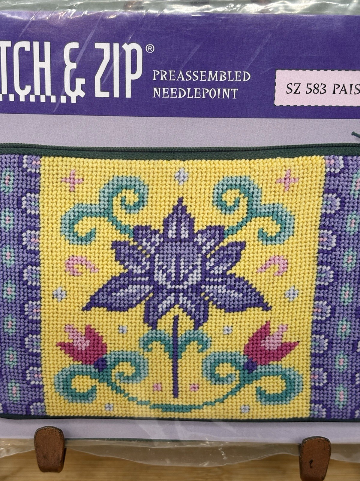 Alice Peterson Stitch & Zip Needlepoint Kit Purse Cosmetic Case SZ 583 Paisley JacobeanSealed NewFinished