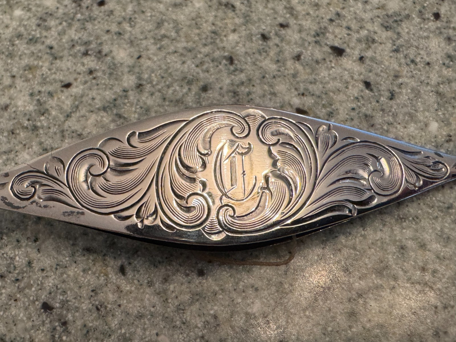 Antique Sterling Tatting Shuttle - "C" with Leafy Fronds, Webster&Co.?, 6.7g