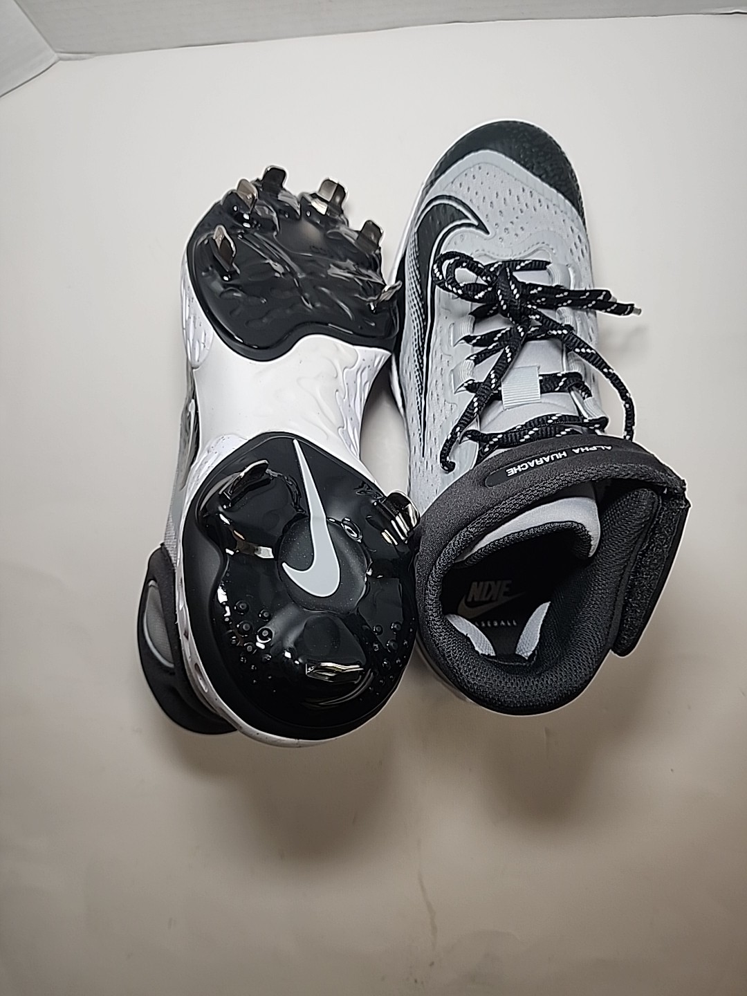 color combination of wolf grey, smoke grey, and white, with a medium width for optimal comfort and performance on the baseball or softball field. With the renowned Nike brand name and durable construction, these cleats are designed to enhance traction and agility for athletes looking to elevate their game on the playing field. New Without Box
