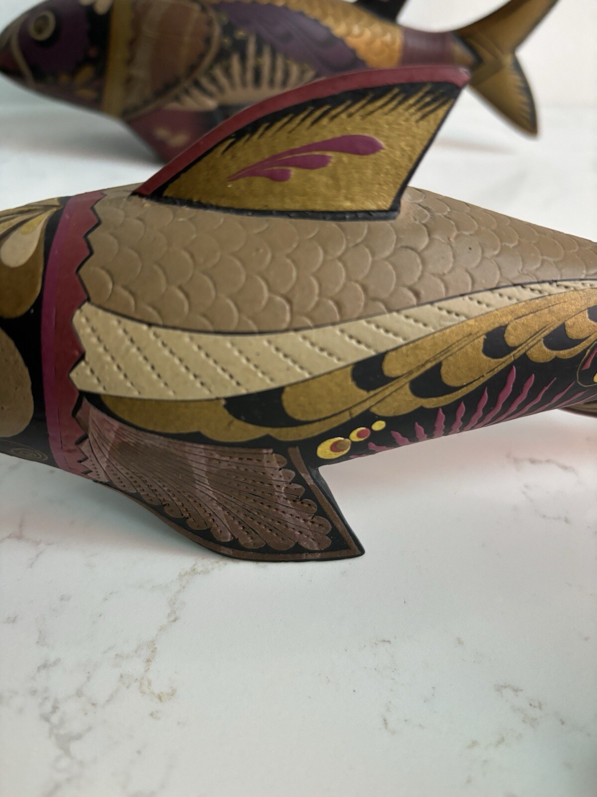 Hand Painted Carved Fish Figurines - Rich Muted Colors - Set Of 3 Specs