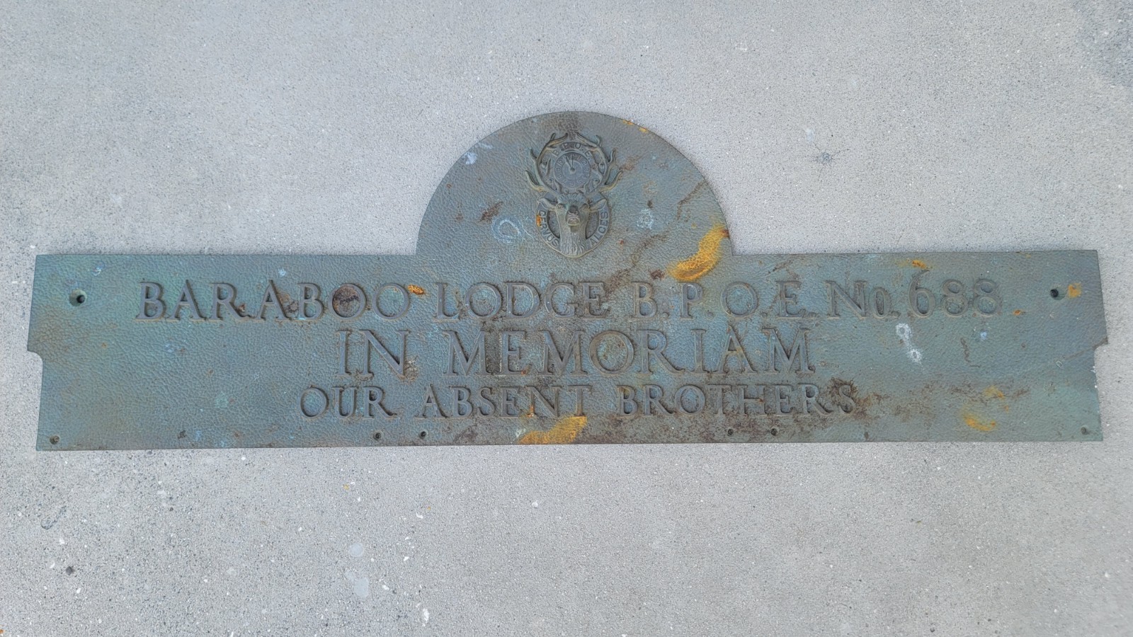 36" Bronze B.P.O.E. Elks Lodge Building Plaque #688 Baraboo, Wisconsin