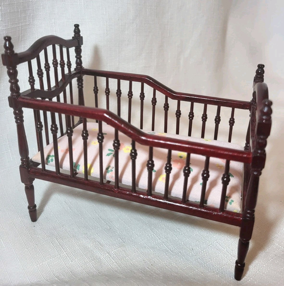 Dollhouse Miniature Mahogany Crib & Dresser Set 1:12 Scale