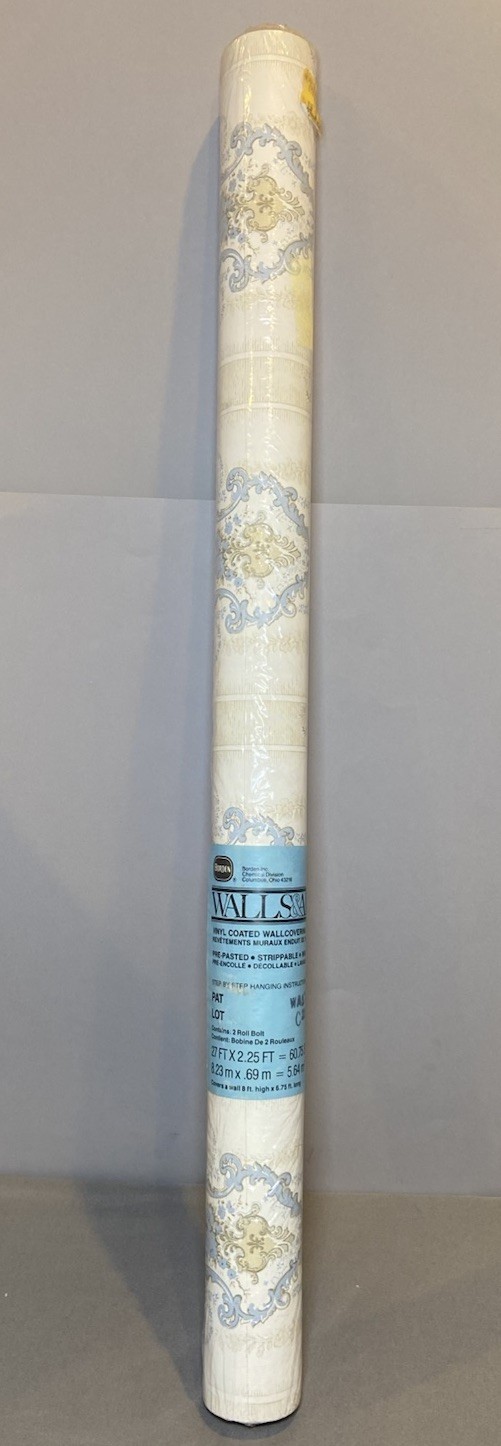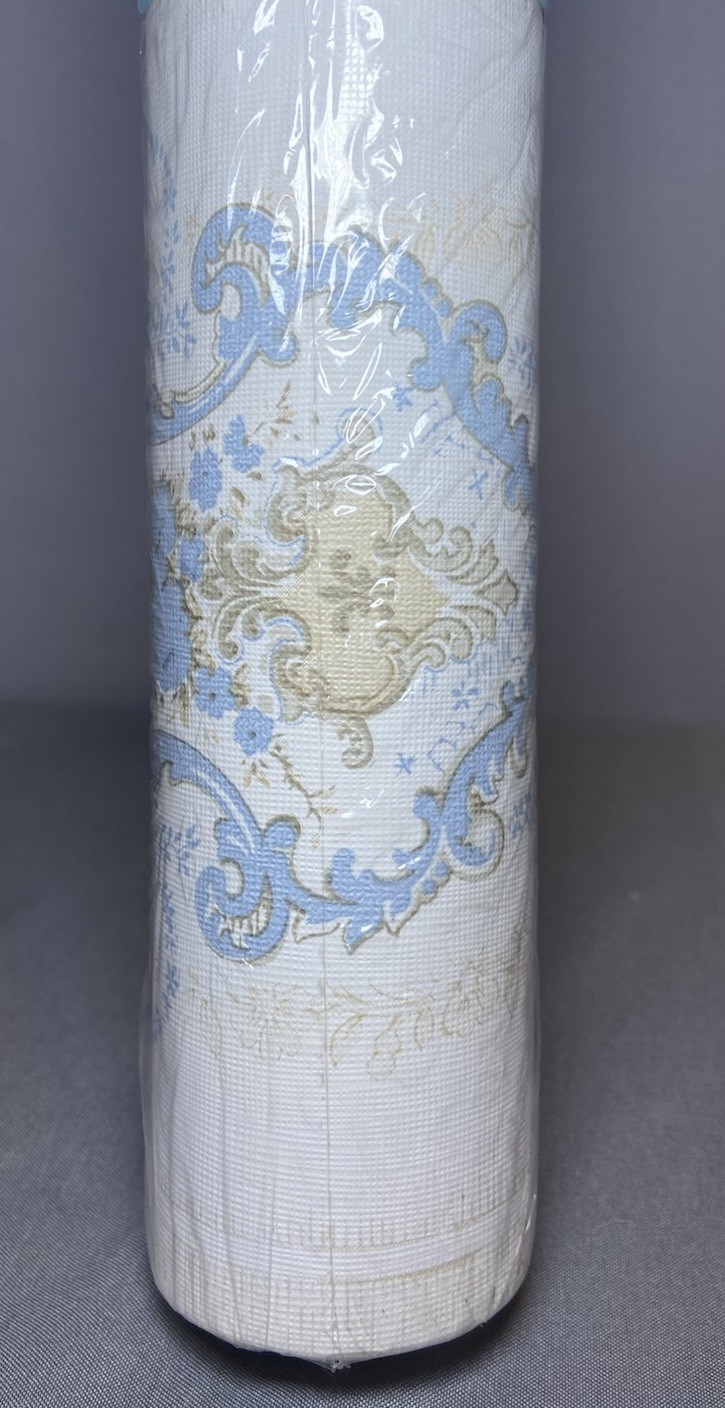 NEW & SEALED Borden Walls & All Vinyl Wallpaper Blue Beige Damask Victorian French Country 60.75 Sq FtContains 2 roll bolt Covers a wall 8’ high x 6.75’ long