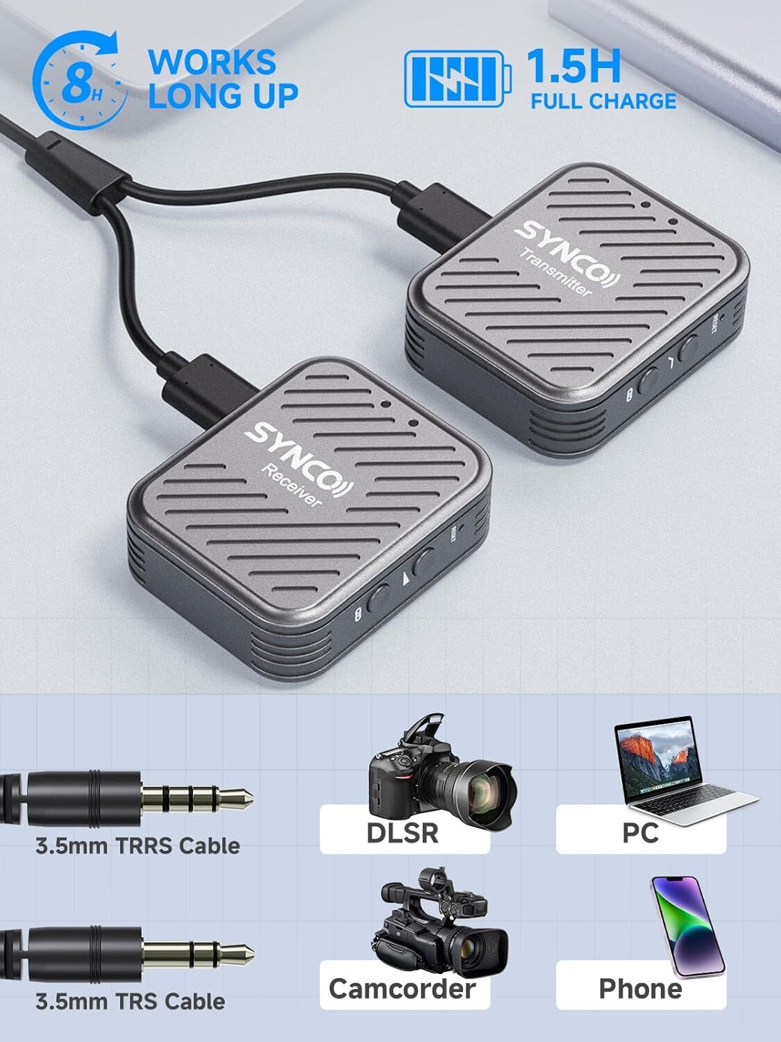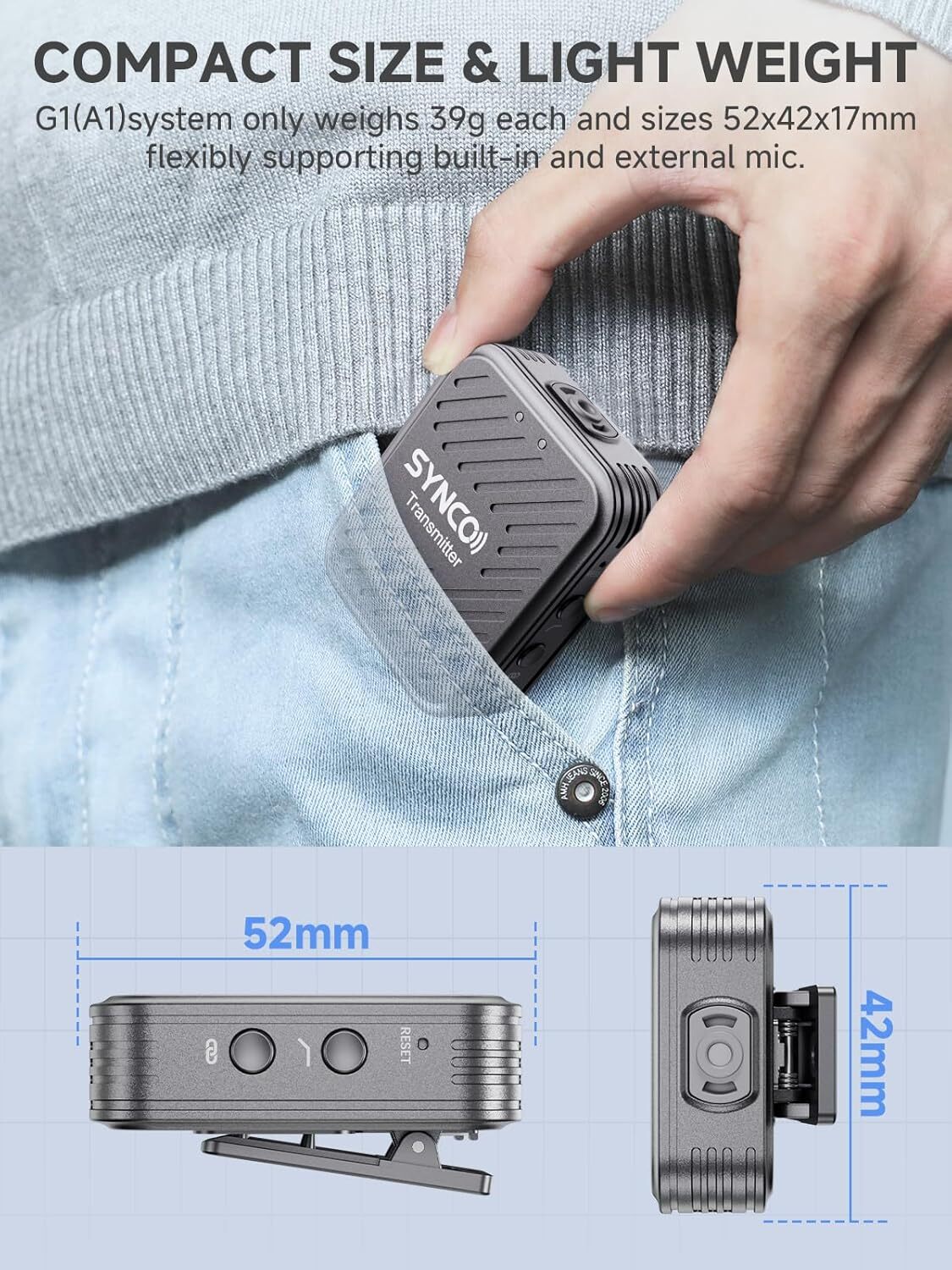 SYNCO G1(A1) Gray, 2.4GHz Wireless Lavalier Microphone for DSLR Camera Specs