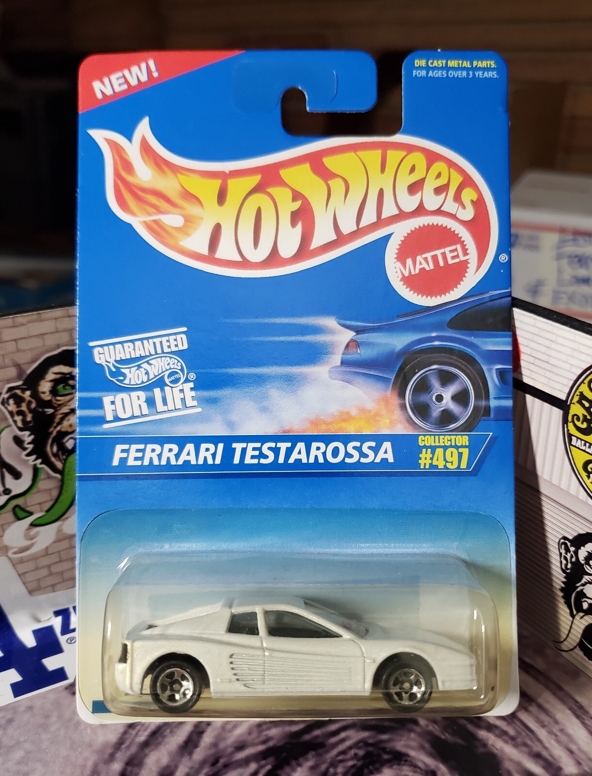 👓Hot Wheels 1996 #497🏁1986 Ferrari TESTAROSSA Pearl White⭐Chrome 5-Spoke CORGI