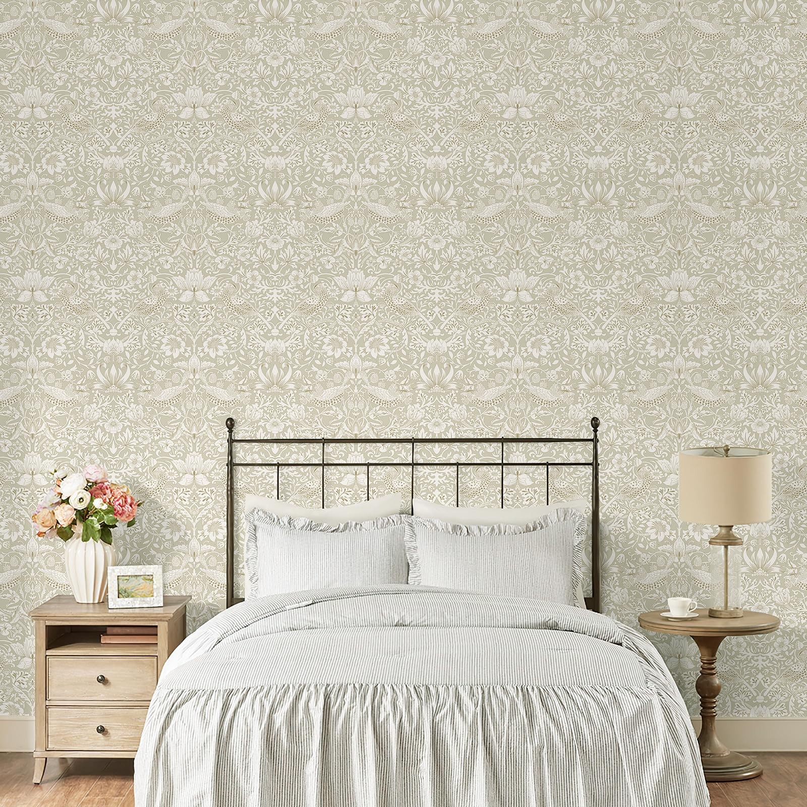 Introducing 's Peel and Stick Wallpaper that will transform your home decor with ease. Our wallpaper is designed with the highest quality vinyl, giving it a durable and self-adhesive feature. It allows anyone to change their living space's look and feel without damaging the walls or spending a fortune on professional services. Our wallpaper comes in a wide range of colors and patterns, from classic to modern and trendy. The designs we offer include botanical, geometric, and textured, among others. Whether you want to create an accent wall, cover up a damaged area, or upgrade the entire room's appeal, 's Peel and Stick Wallpaper is your perfect solution. 's Peel and Stick Wallpaper is perfect for any room in your home, from the living room, bedrooms, nursery, to the kitchen, and bathroom. It is also ideal for renters or homeowners who frequently renew their homes' decor. You can use it to update your space without committing to a permanent change, saving you time and money. Our wallpaper is affordable, high-quality, and versatile, suitable for all design enthusiasts looking for a hassle-free decor solution. It is available in different sizes, making it suitable for all-sized rooms.William Morris Classic Pattern: William Morris's very classic strawberry bird and flower pattern, against warm taupe color, calming, elegant, and understated, suitable for your bedroom, living room, bathroom, kitchen or any other home decoration, adding a retro atmosphereHigh-quality Material: Made from high-quality materials, self adhesive william morris wallpaper is built to withstand tear for years to come. Its premium adhesive ensures that it won't peel off, even in high-traffic areas. TIPS - Color varies a little with different lights, devices, check out the video for
