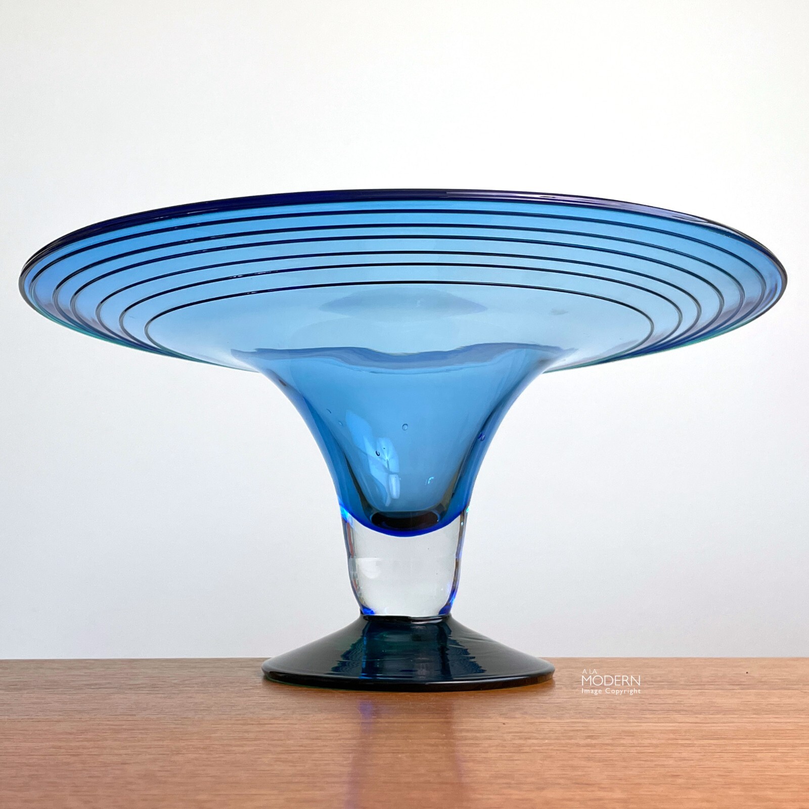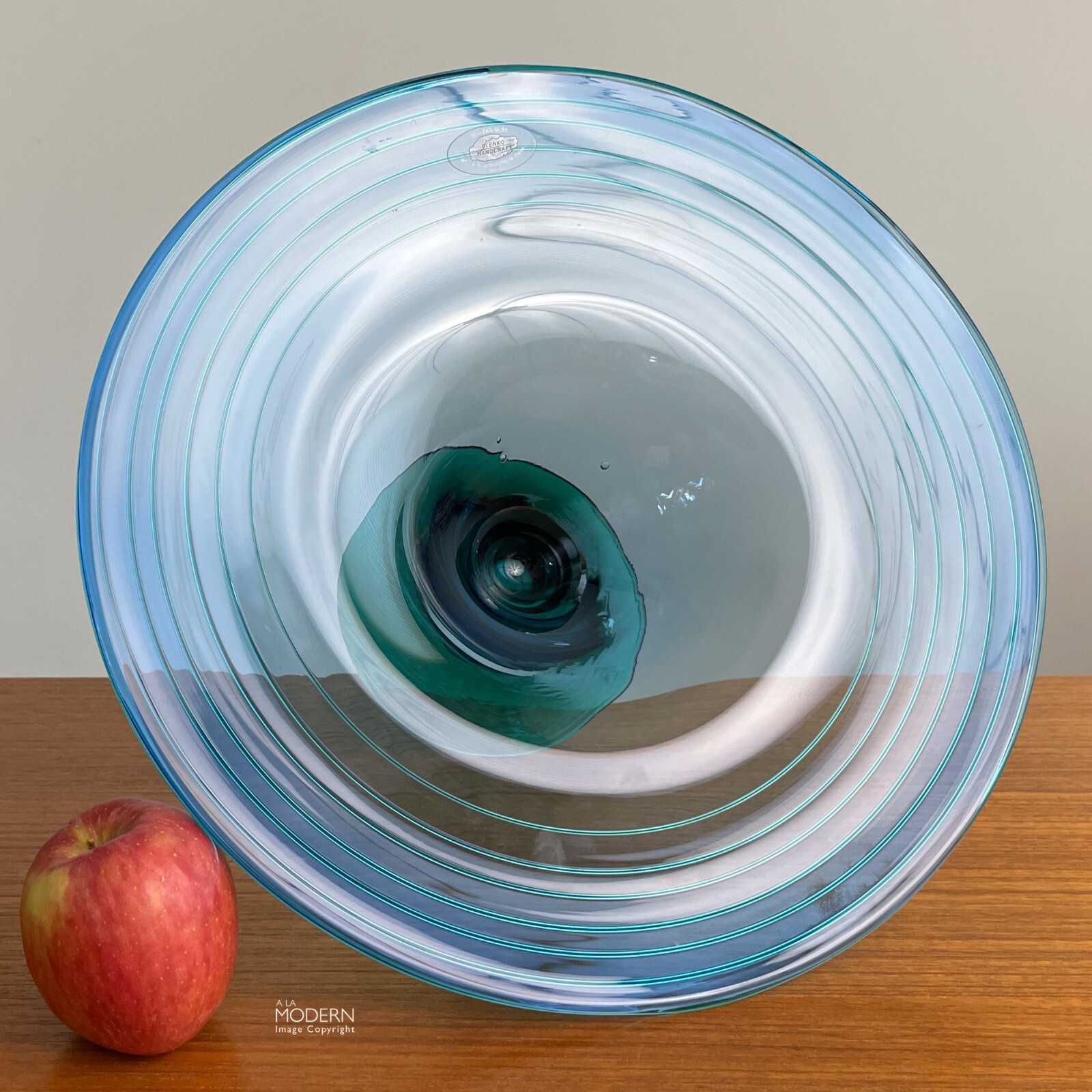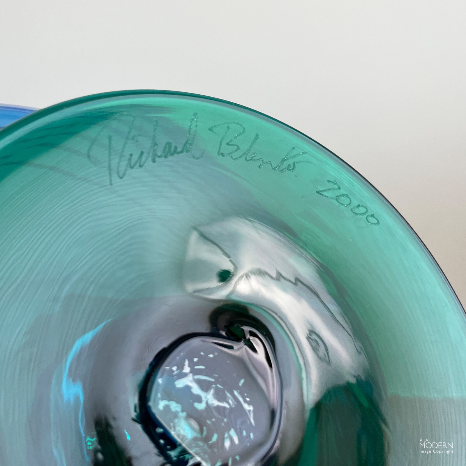 Richard Blenko Signed 2000 Glass Centerpiece Azure Blue Spiral Emerald Green