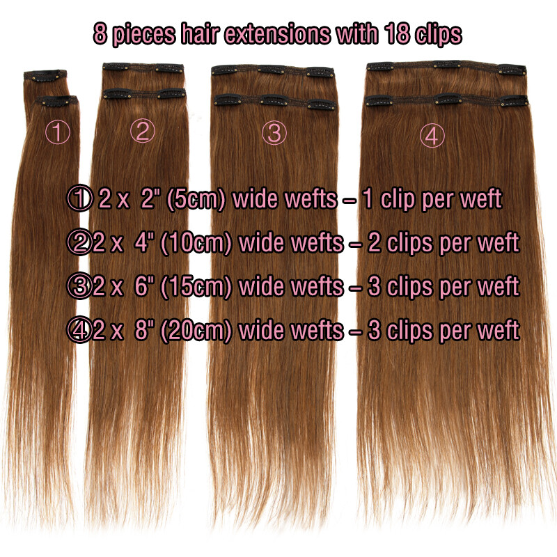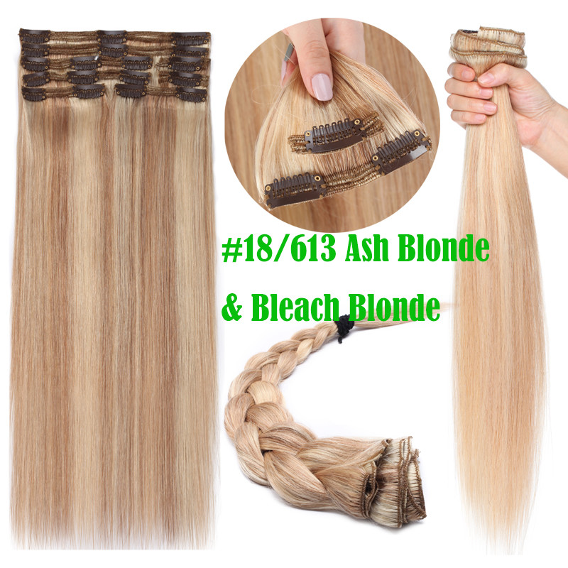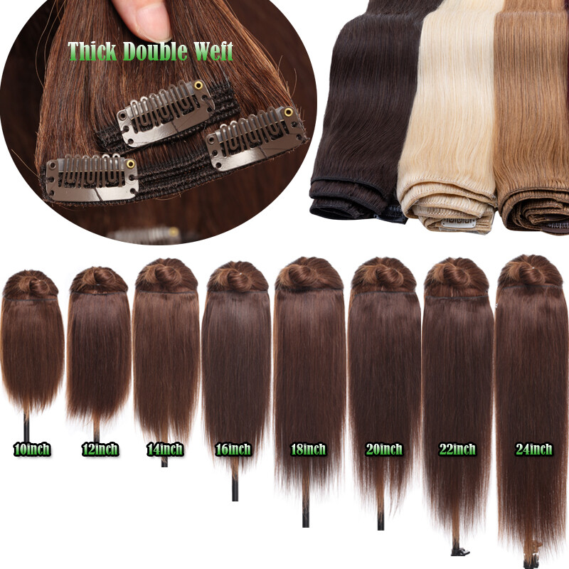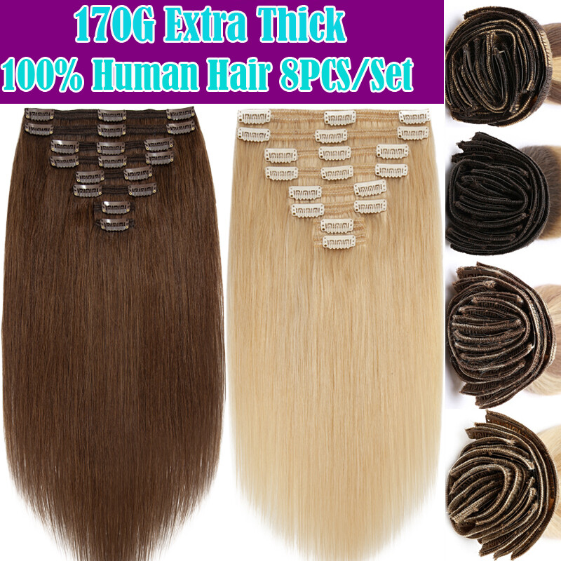 170G+ REAL THICK Double Weft Full Head Clip In Human Hair Extensions Balayage US Specs