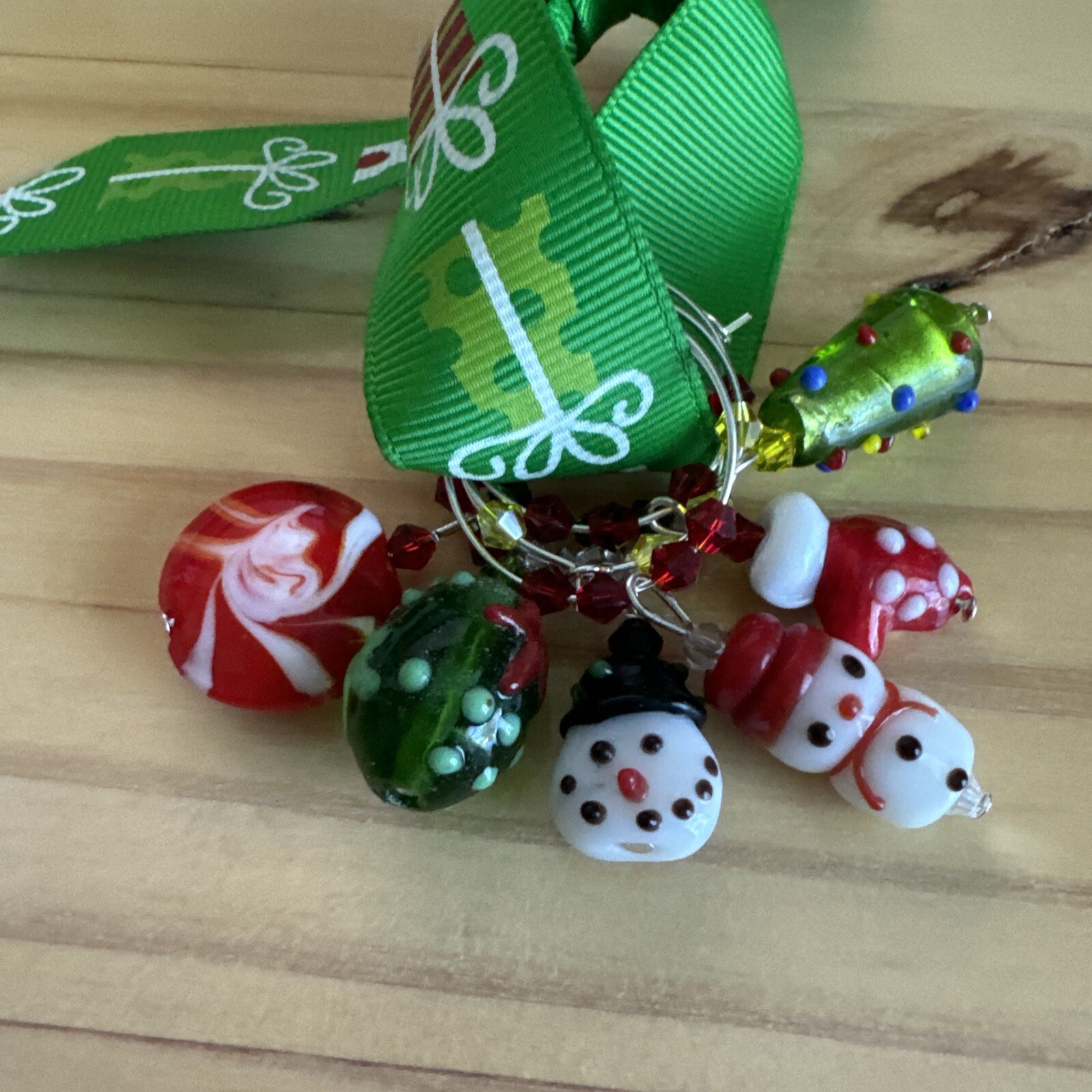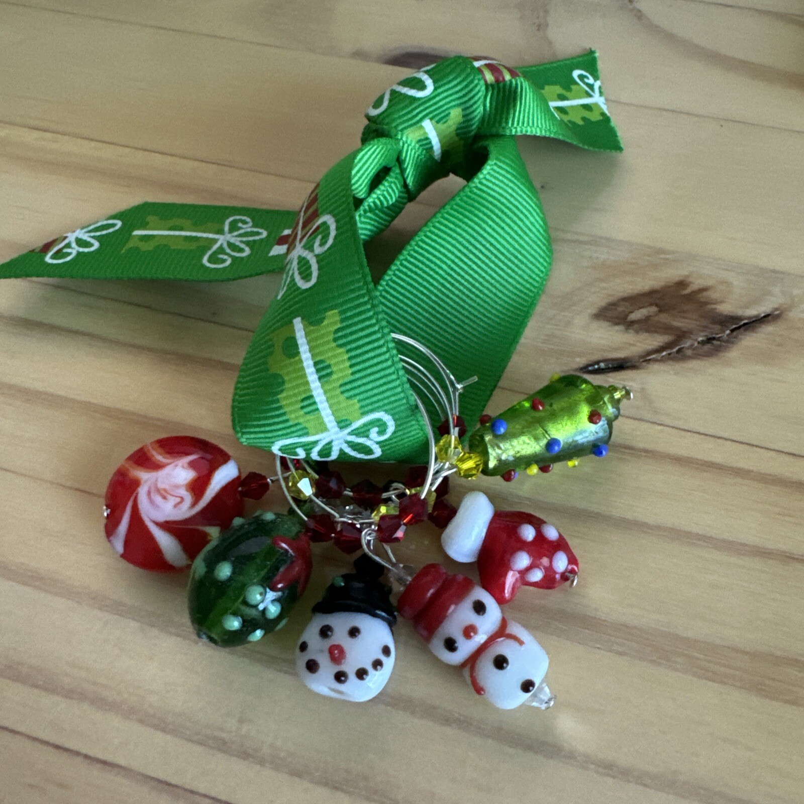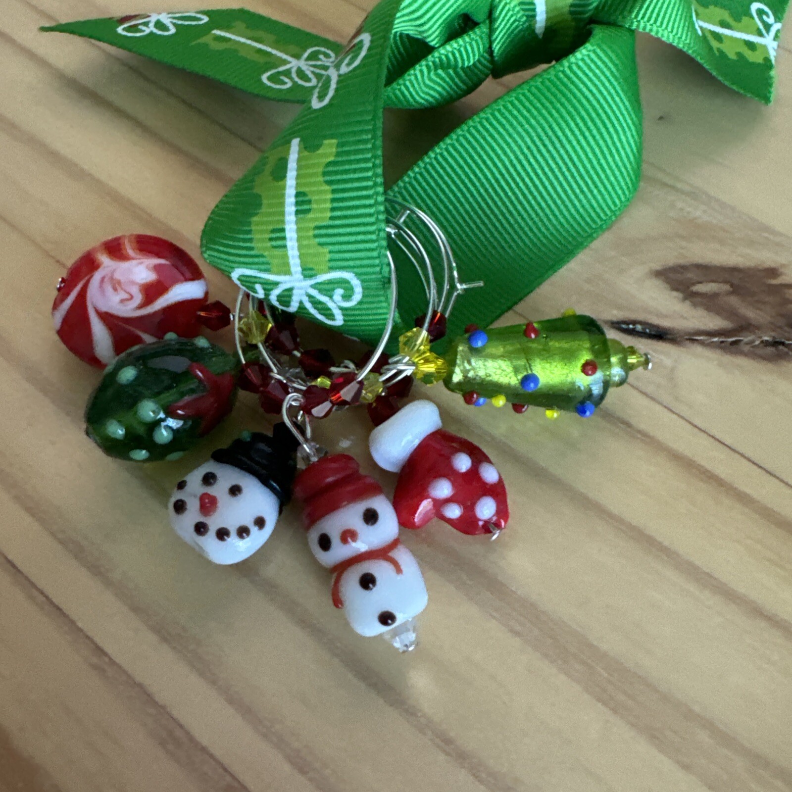NEW! CHRISTMAS GREAT STOCKING STUFFER Wine Glass Charm rings Set Of 6 Specs