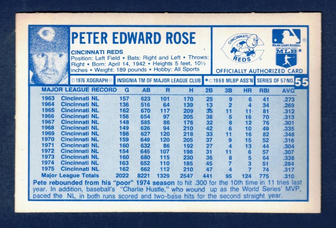 1976 Kellogg's 3-D Super Stars Pete Rose #55 Cincinnati Reds NM+