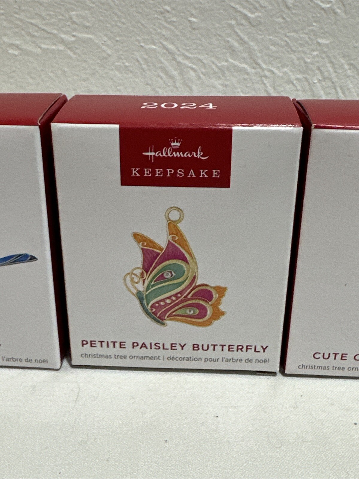 Hallmark 2024 Steller's Jay Butterfly Fairy Mini Ornament Lot + Display Stand Specs