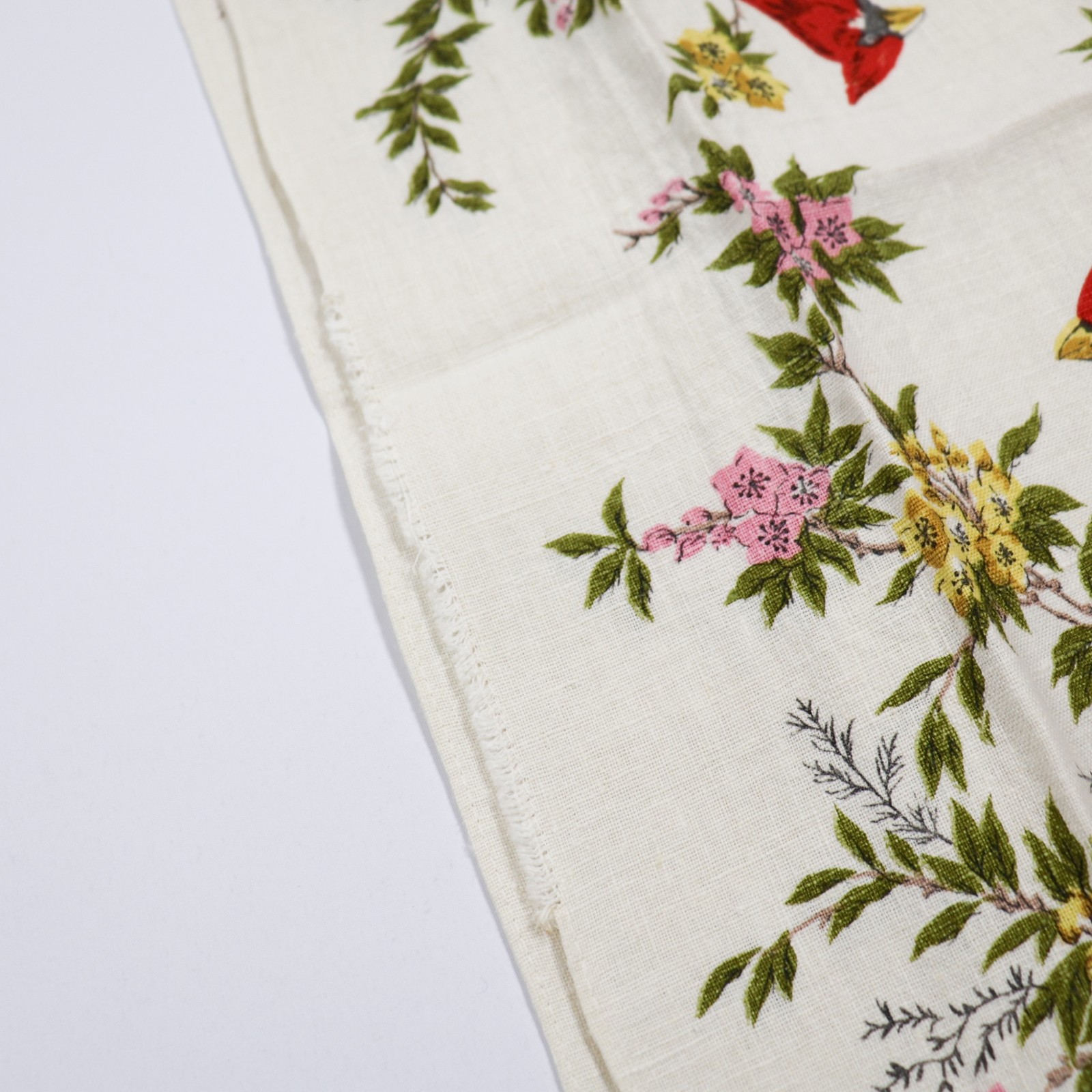 Vintage Kitchen Hand Tea Towel Printed Birds Floral SET of Three Linen 1960s Specs