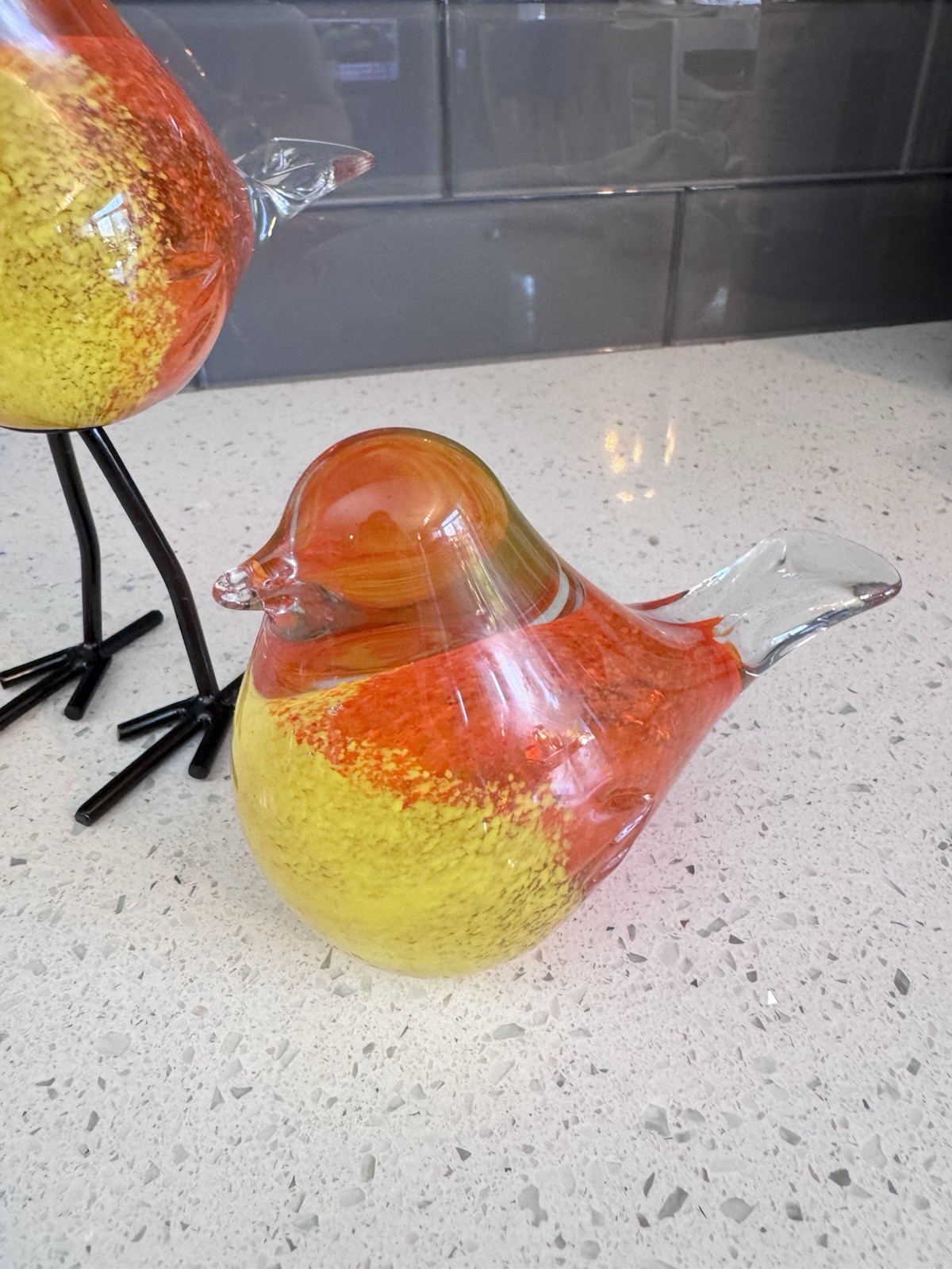 Title: Vintage Handcrafted Glass Bird Figurines - Murano Style set of 2