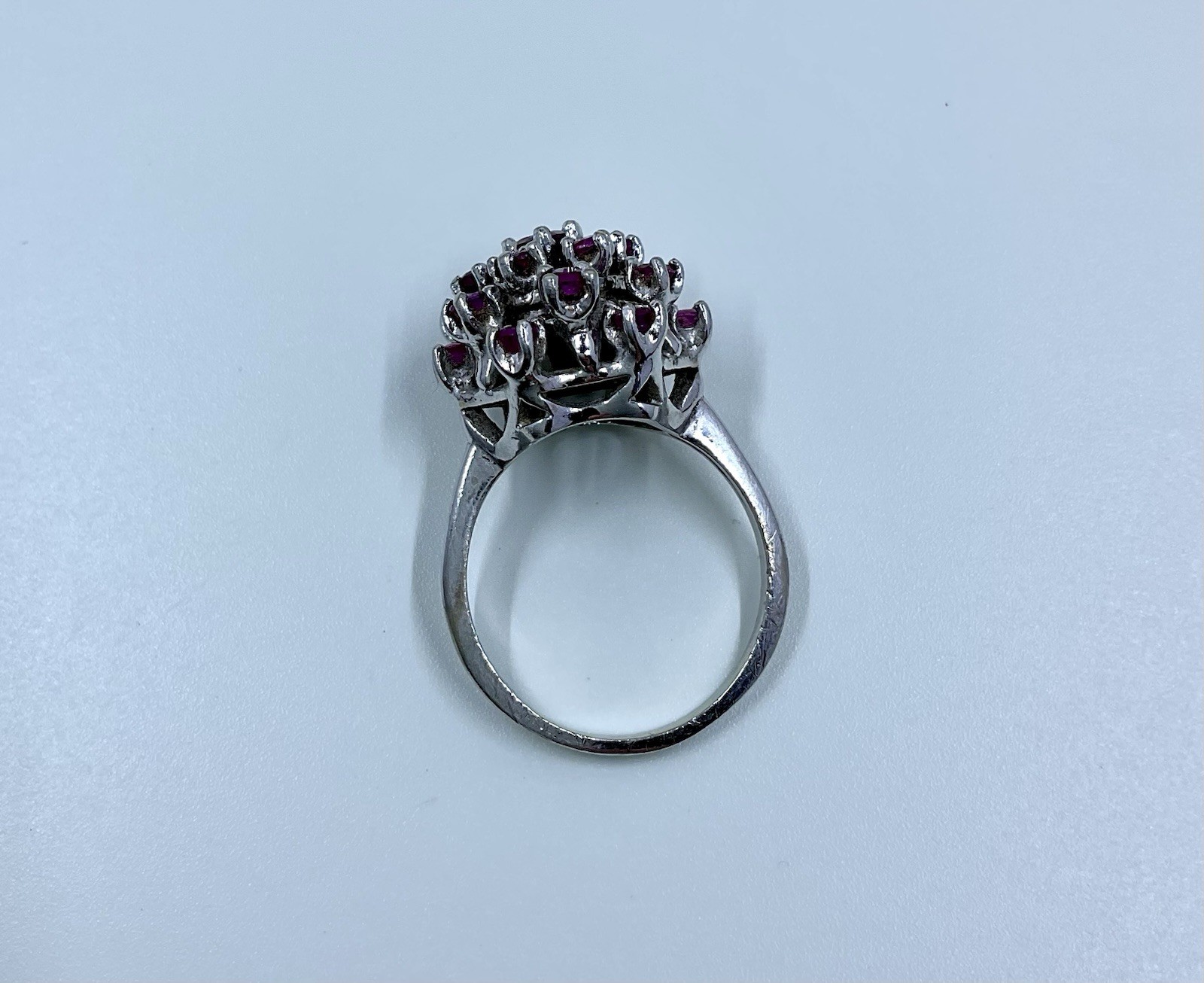 14k White Gold Natural Ruby Cocktail High Relief Dome Princess Cluster Ring Vintage w BoxGrab attention with captivating hand candy! Offering a lovely 14K white gold, natural ruby antique vintage