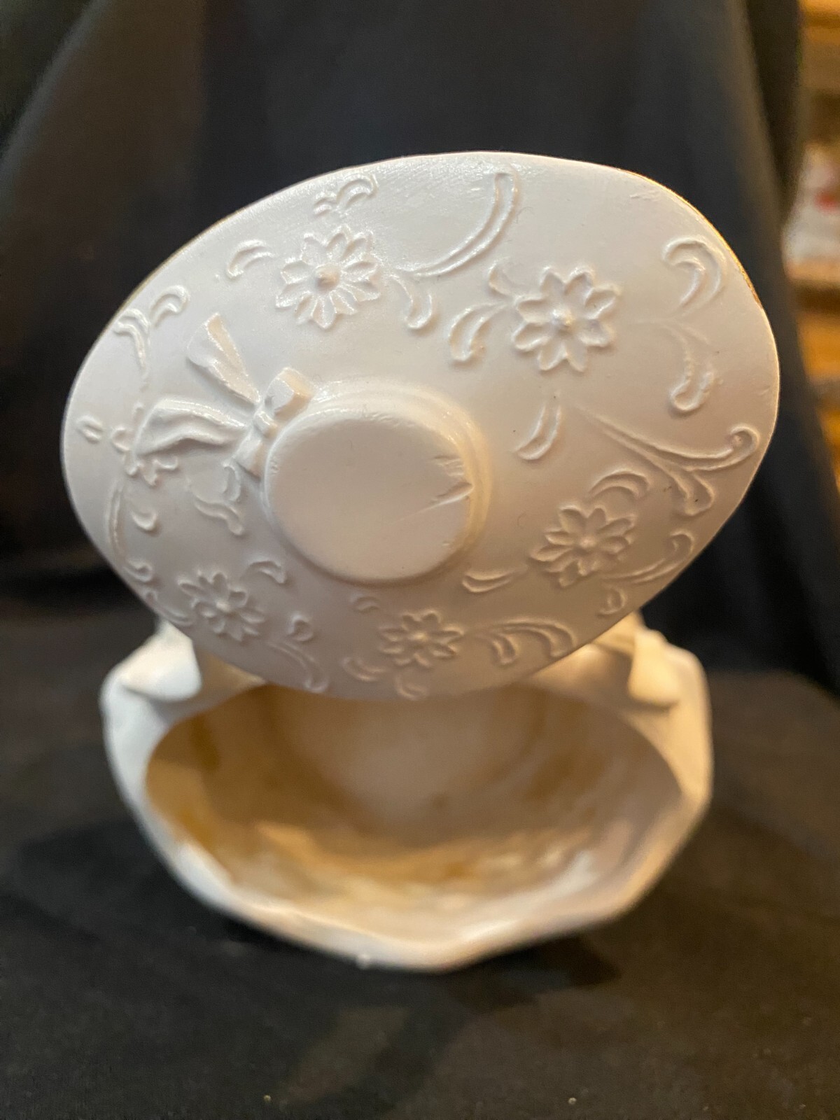 Beautiful figurine from the 1960s!No chips, cracks, or crazing. Slight yellowish discoloration in several spots at bottom of dress. On the back of the planter is a glazing error that appears at first as a chip, but it is smooth.Please zoom in to photos for further detail. Photos serve as part of the description.Measurements: 6 1/2" to top of hat high4 1/2" wide; 3 3/4" front to backPlease ask any questions prior to bidding. I am happy to combine shipping with any of my other 250+ listings.From a non-smoking home.Thanks for looking!