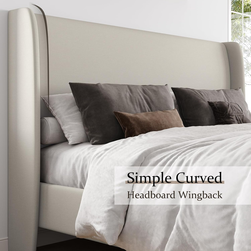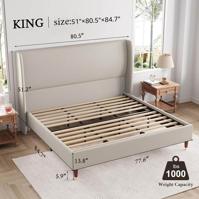 Jocisland King Bed Frame Upholstered Bed with Wingback Headboard Platform Bed Ki