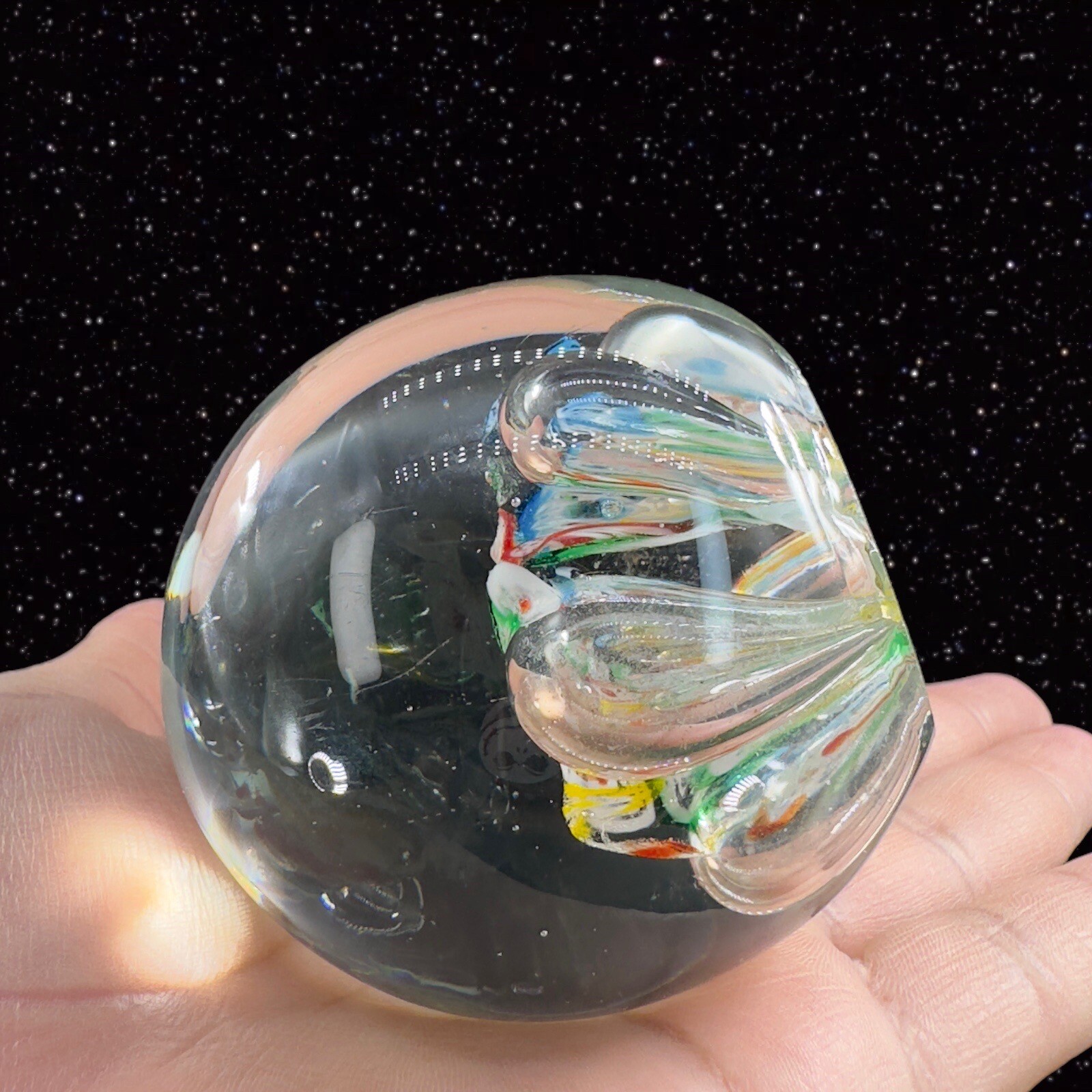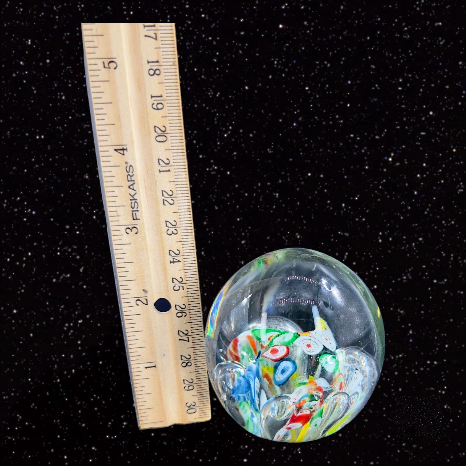 Vintage Art Glass Paperweight Glass Orb Large Bubbles Multicolor Millefiori Specs
