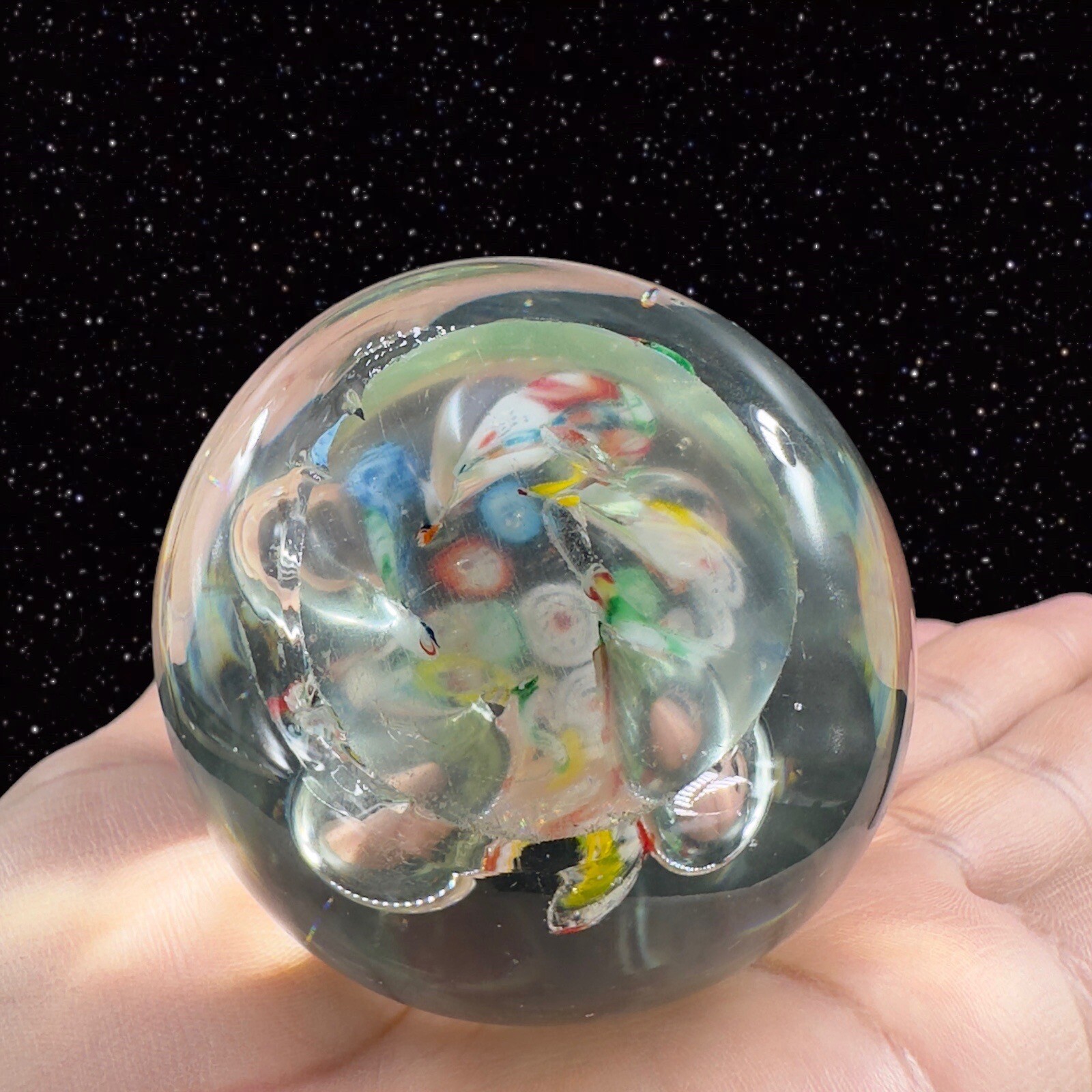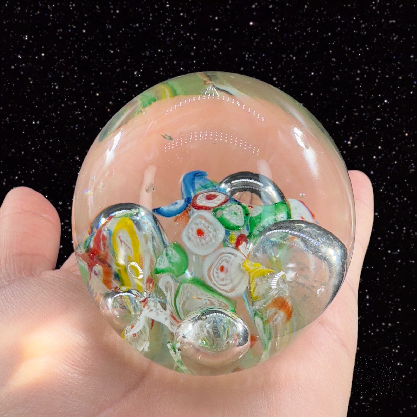 Vintage Art Glass Paperweight Glass Orb Large Bubbles Multicolor Millefiori